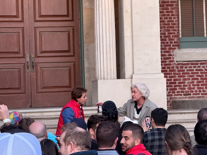 During the journey to Courthouse Square, guests receive a message from Dr. Emmett Brown himself, and can rock out to the sweet sounds of Huey Lewis and the News.