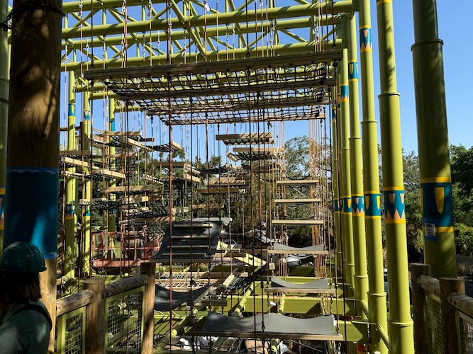 We got to head up to the second level of Wild Oasis, which will provide a higher view of the animal habitats, and will be the access point for some truly impressive climbing structures that aren’t for the faint of heart! Canopy Climb features 200-feet of horizontal climbing trails and vertical climbs reaching 45-feet high.