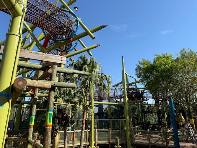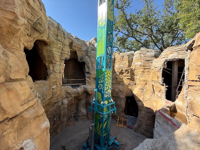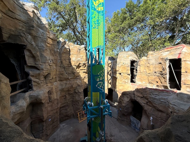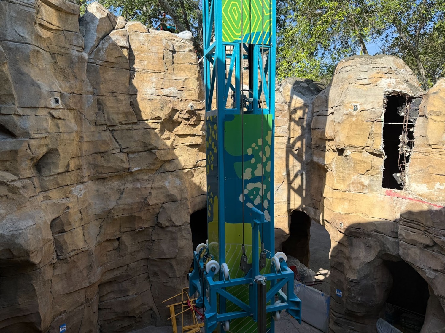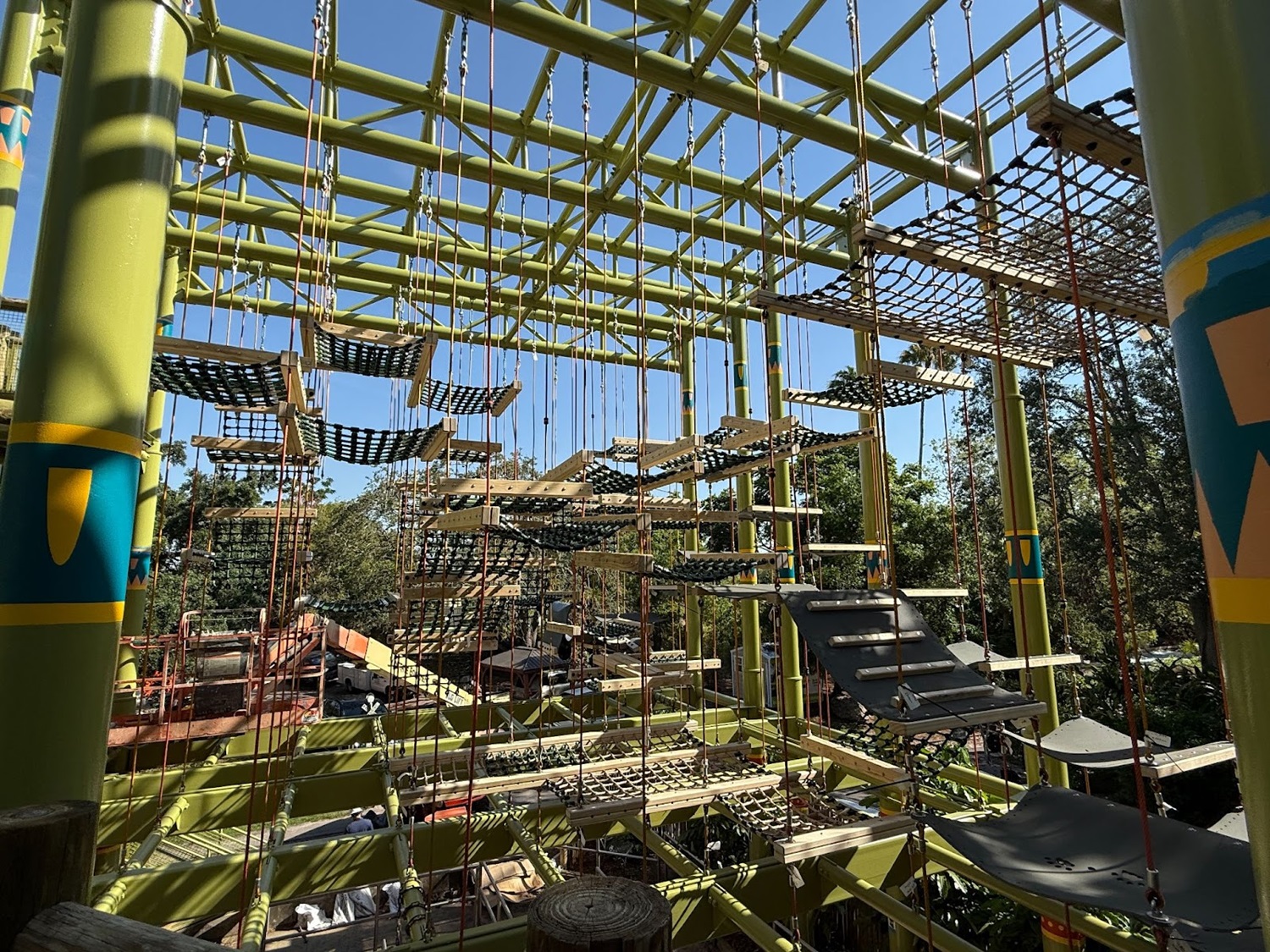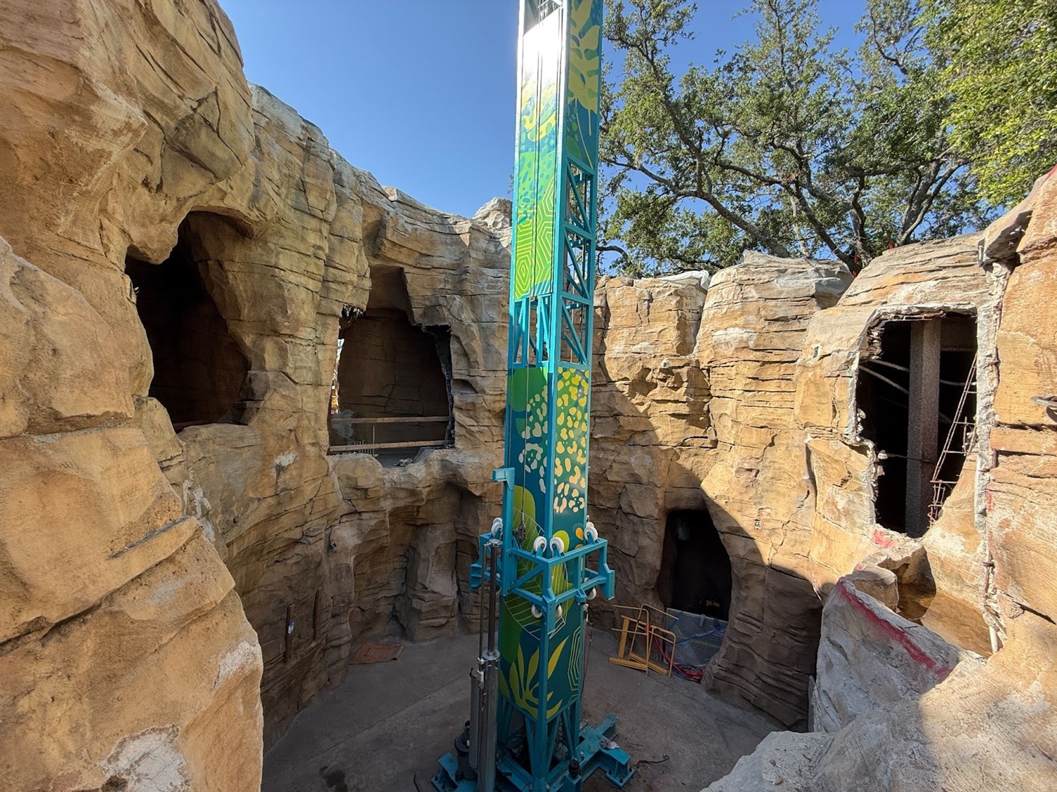 We also got a clearly under construction view of the area’s main ride, Tree Top Drop. While a similar attraction previously called this spot home, Tree Top Drop is a new build that will feature an immersive multimedia experience.