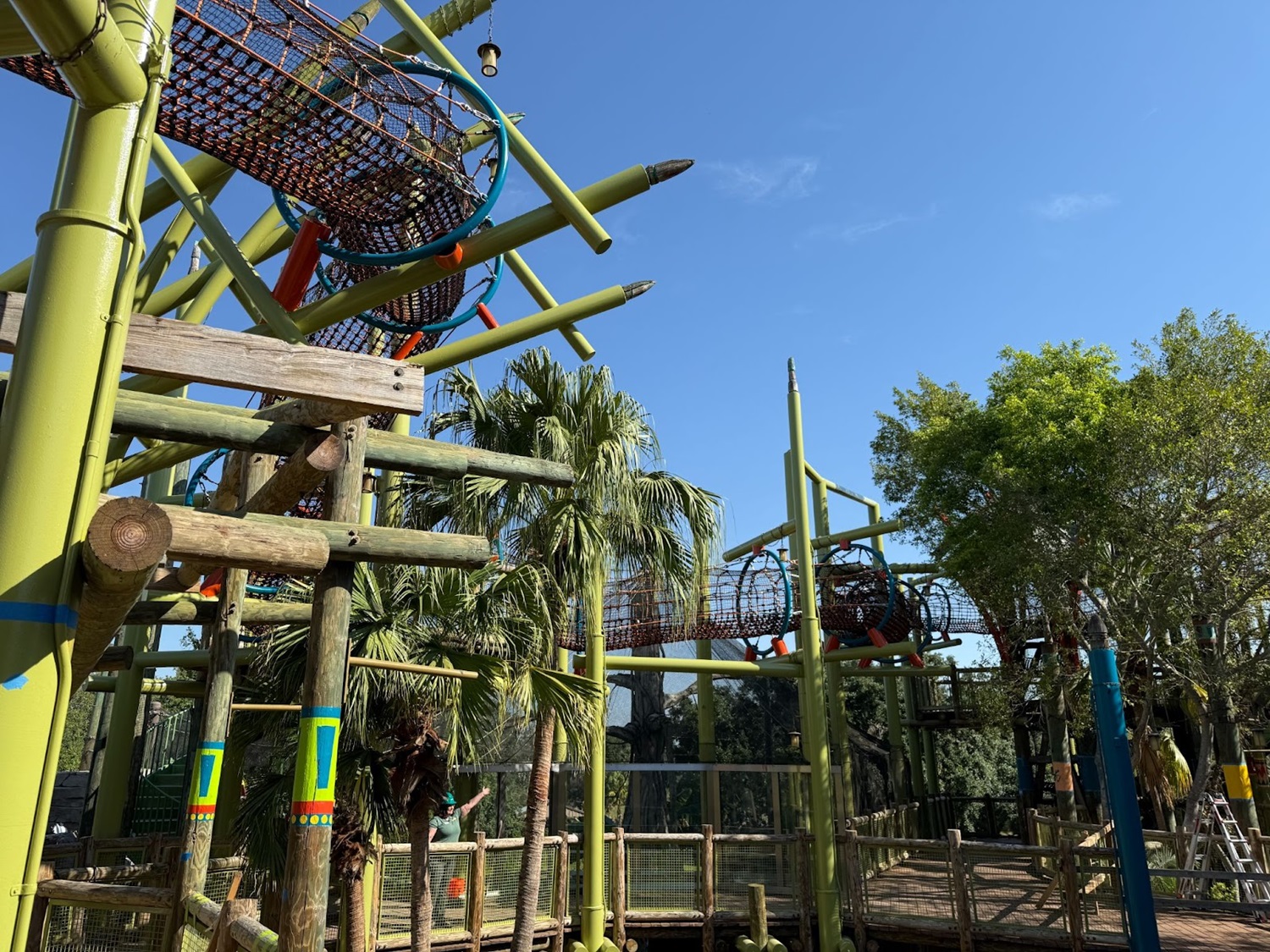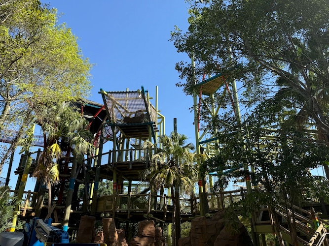 Wild Oasis at Jungala will be somewhat familiar to longtime visitors to Busch Gardens, as the area has previously existed, but was shuttered for the last few years. The park is injecting new life into the area with the arrival of new animal species, an impressive array of climbing structures, a reimagined drop tower and a splash pad.