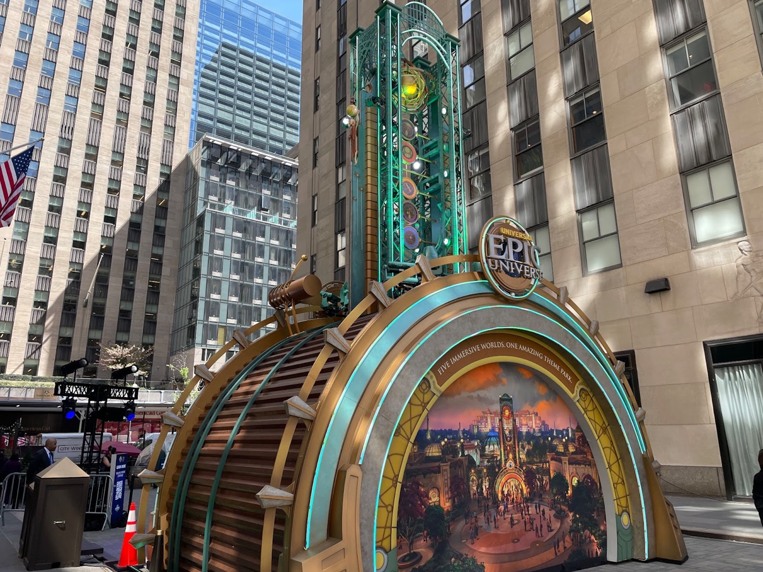 Located at Manhattan’s Rockefeller Plaza, the centerpiece of the tour brings a 30-foot tall replica of the Chronos, the entry gateway into Epic Universe.