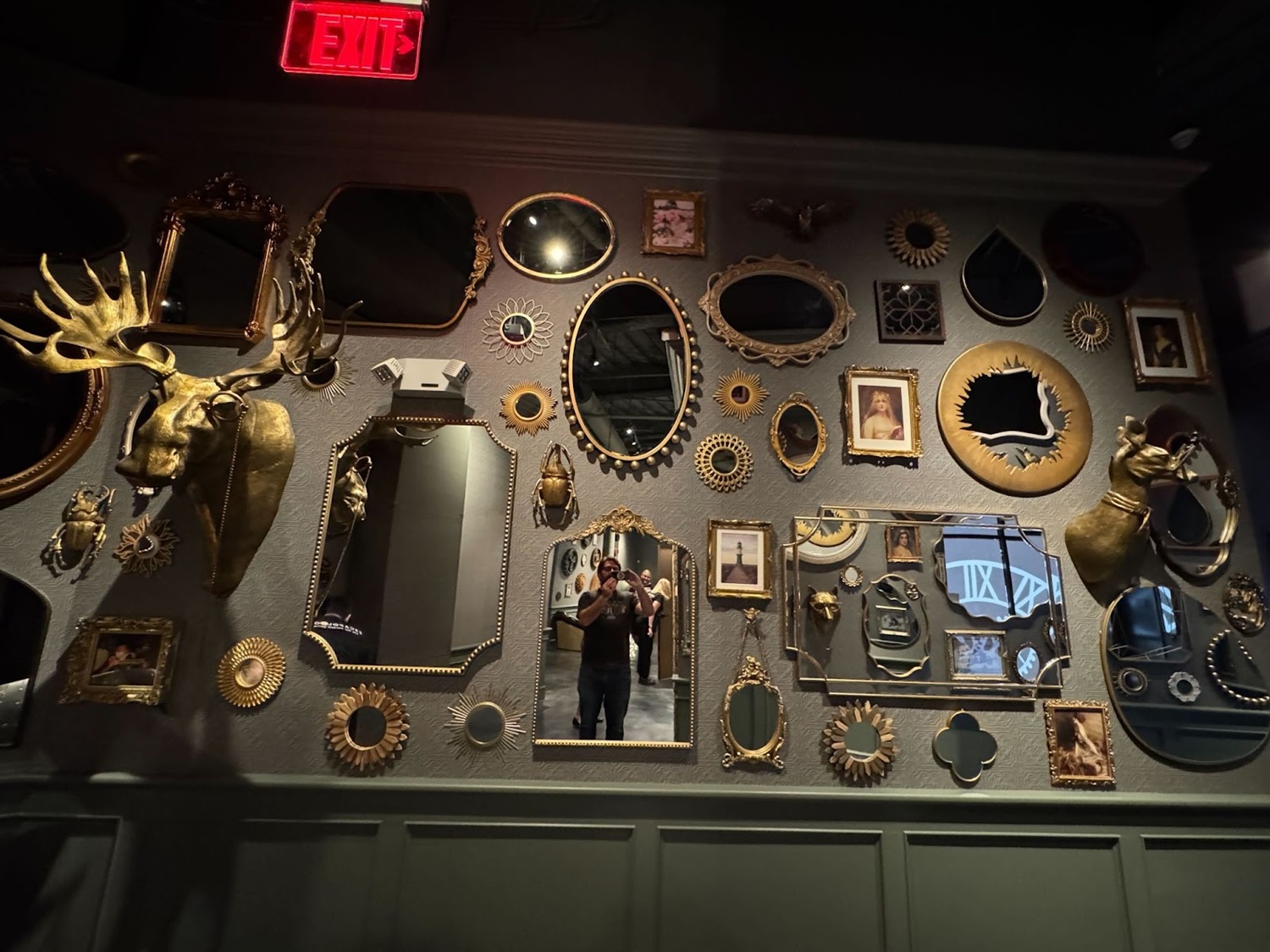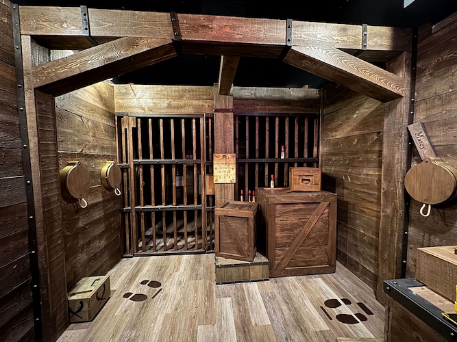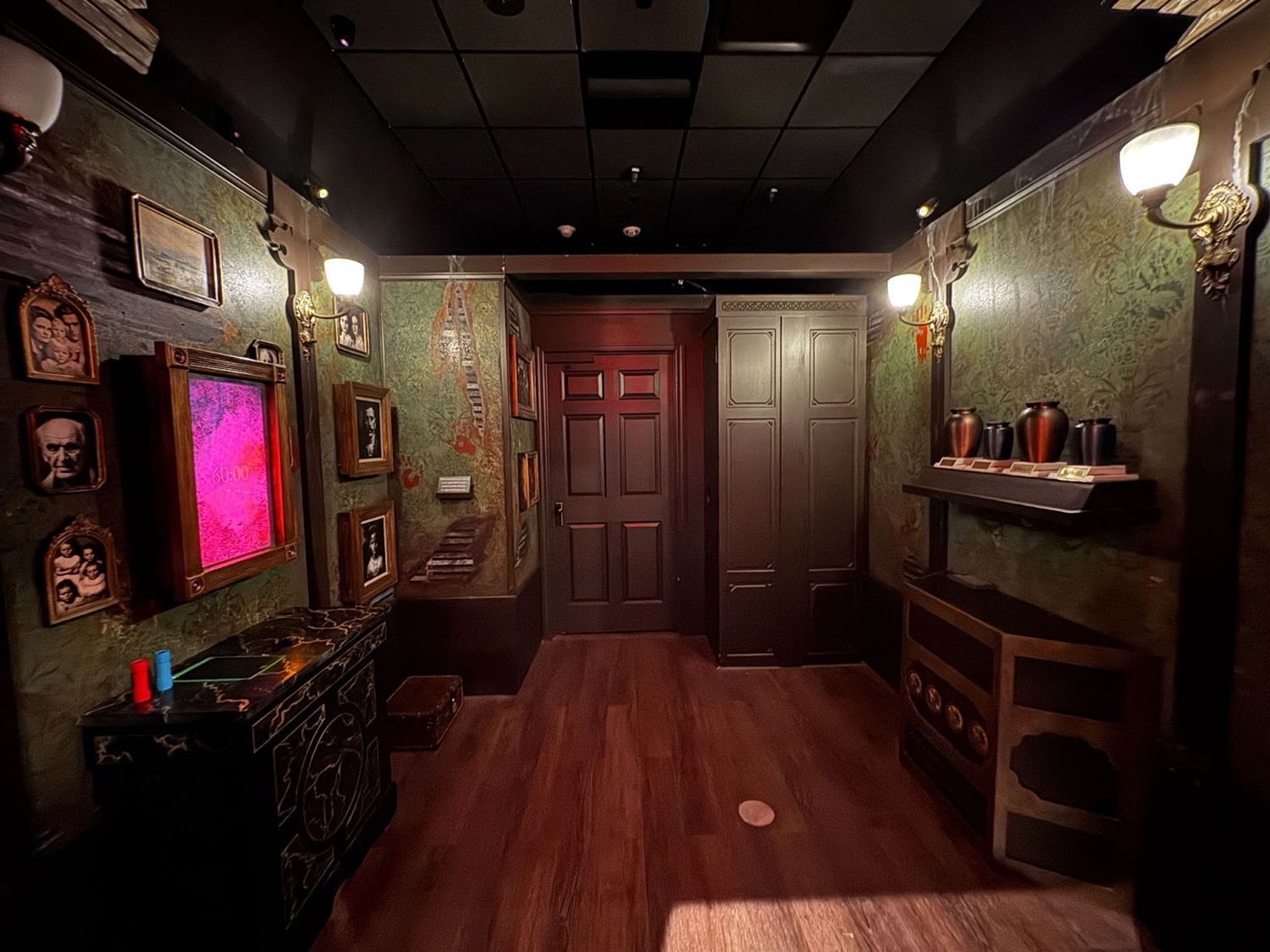 This new Escapology location is made up of eight different escape room experiences: there’s Haunted House (I was told this is already the most popular room and that popularity is likely to increase as Halloween season approaches in Southern California), A Pirate’s Curse (self-explanatory), Mansion Murder (taking a cue from murder-mystery stories like Clue and Knives Out), Lost City (with theming similar to Nickelodeon’s Legends of the Hidden Temple game show), 7 Deadly Sins (another horror-themed room), Who Stole Mona? (encouraging guests to solve an art heist with a real laser maze), and two rooms inspired by licensed properties– Batman: The Dark Knight Challenge and Scooby-Doo and the Spooky Castle Adventure.