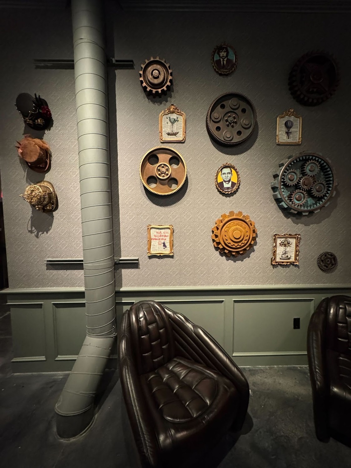 Inside the lobby you’ll find more decor adding to Escapology’s steampunk theme, plus assorted merchandise and helpful information about the escape rooms at the front counter.