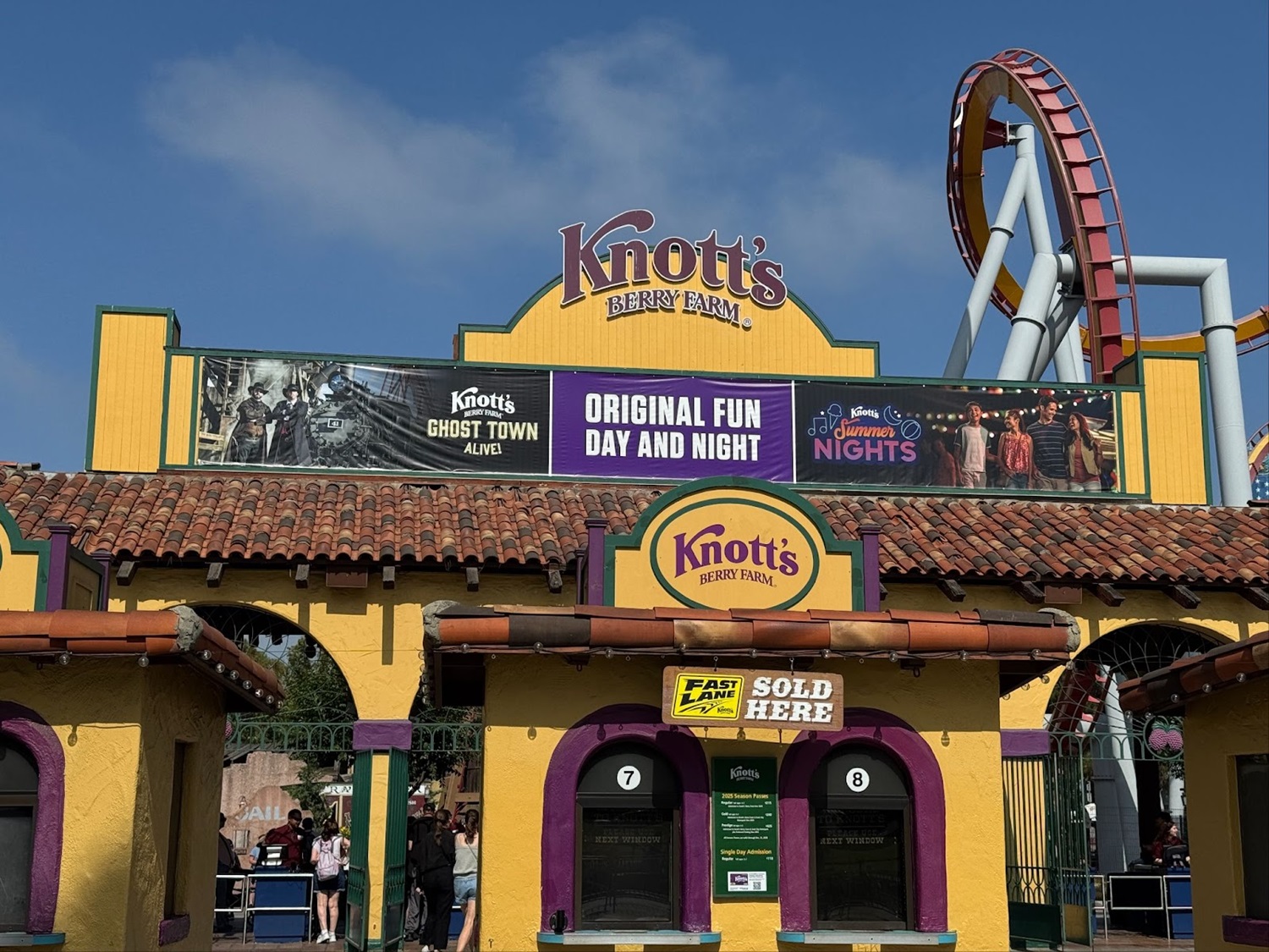 Rewinding time a little, we arrived at the entrance to Knott’s Berry Farm to find the usual attractive signage and decor around the front of the park.