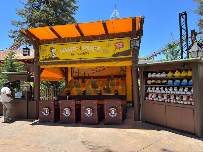 During one of our short breaks from Ghost Town Alive! we wandered through the Camp Snoopy area of Knott’s, where we found a new carnival game called Huff & Puff Hill Climbers, and we saw Snoopy and Schroeder from the Peanuts gang meeting and greeting guests where the old Camp Snoopy Theatre used to be.