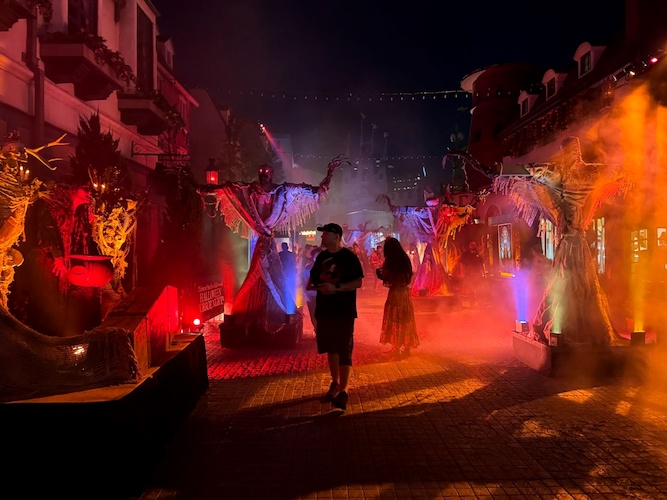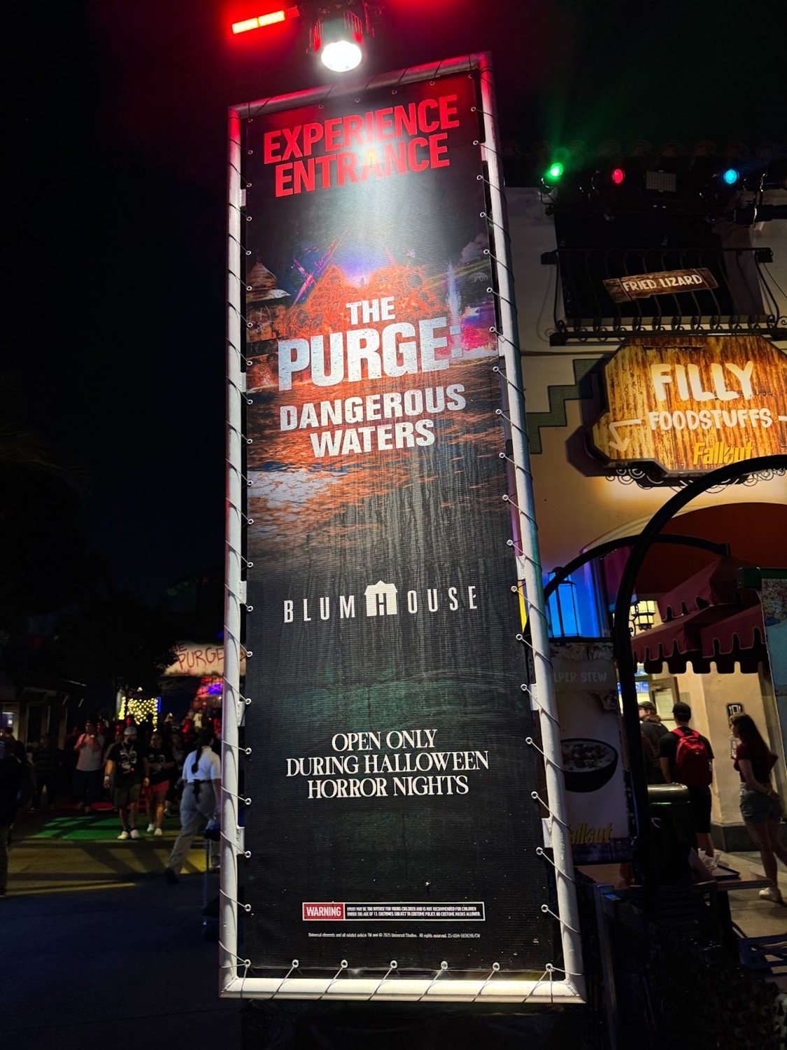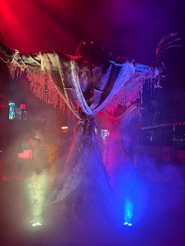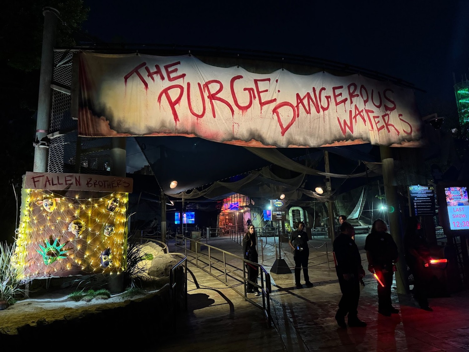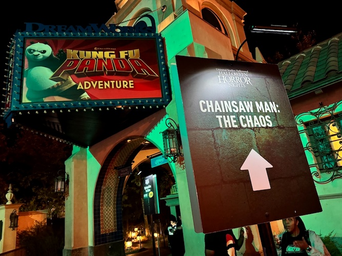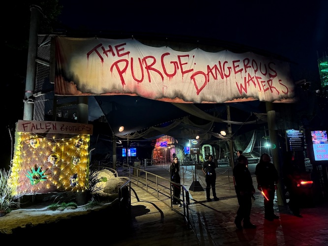 A 4D show entitled Chainsaw Man: The Chaos has been imported from Universal Studios Japan for Halloween Horror Nights this year, although this version doesn’t actually employ 3D effects that require glasses. Still, it was pretty interesting to get a taste of how Asian theme parks celebrate the spooky season. Returning from the previous couple of years is also The Purge Dangerous Waters in the WaterWorld arena.