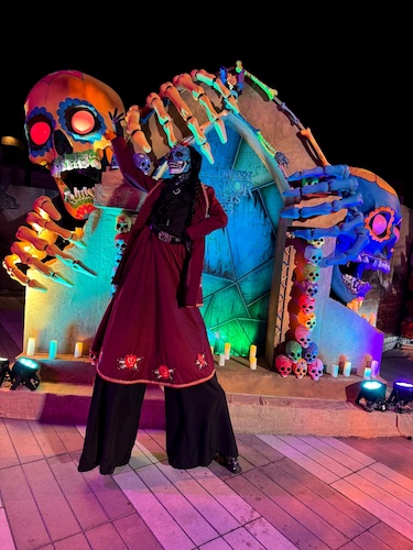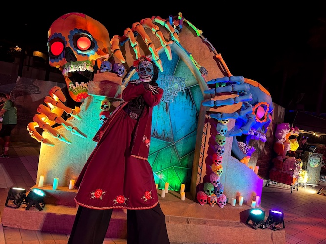 Universal Plaza has been transformed into a celebration of Dia de Los Muertos, complete with photo ops, roaming stilt-walker characters, and food and beverage stands.