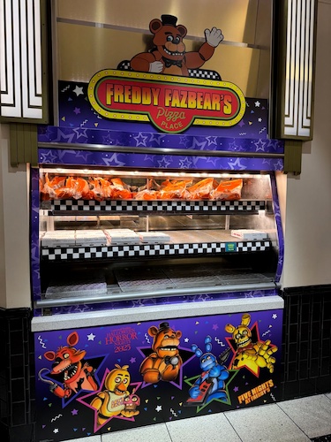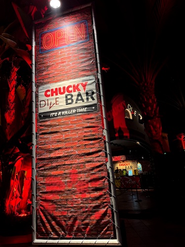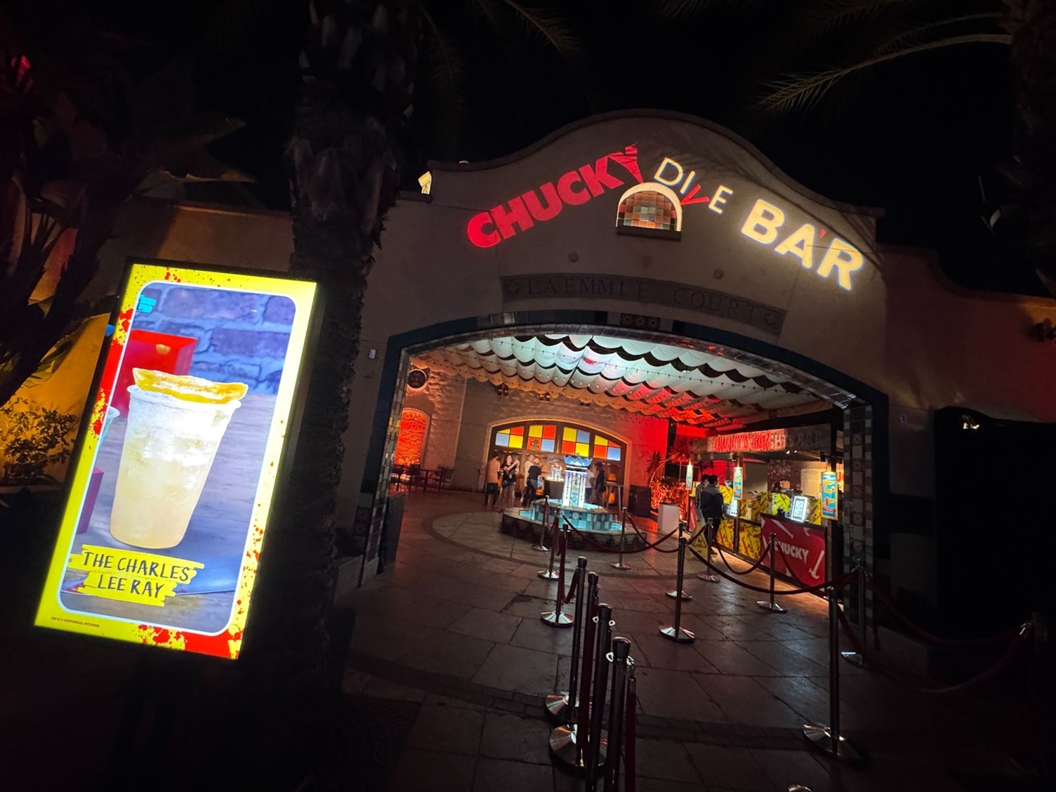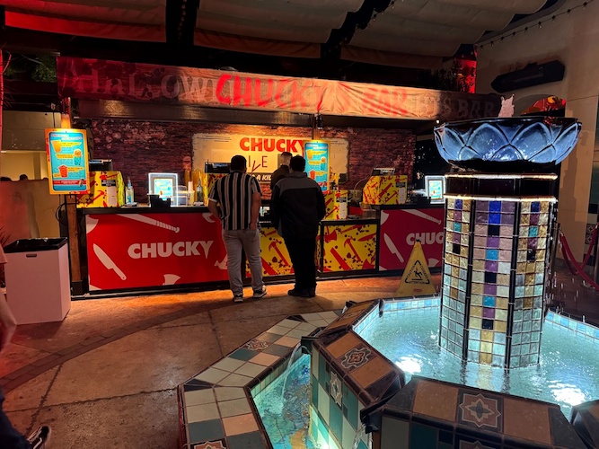 As far as themed restaurant overlays go, you’ll find eateries inspired by the Fallout franchise, Jason, Five Nights at Freddy’s (without working animatronics like they have at Universal Orlando, sadly), Terrifier, Slash (the Guns N’ Roses guitarist who also provides the soundtrack for this year’s Scarecrow house), and Chucky.