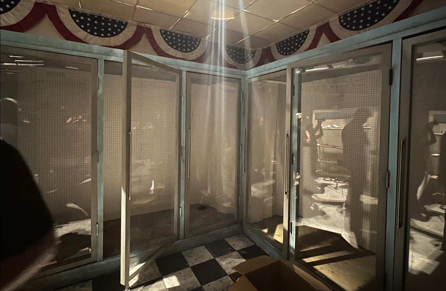 Unlike Terrifier, none of the various dead body props had been placed inside Fallout yet during our tour, but Murdy explained for the opening scene, “There's a bunch of dead Vaulters scattered all over the ground. Over the door will be ‘Just Married’ decorations for Lucy's apartment, and she comes out. She's already been stabbed by Monty. She's in that wedding dress… Monty comes out from the opposite door, and the guests are trapped in between the two of them, as if they're trying to get at each other. That’s the first sign you get, besides all the dead bodies, that something has gone wrong in this idyllic vault."