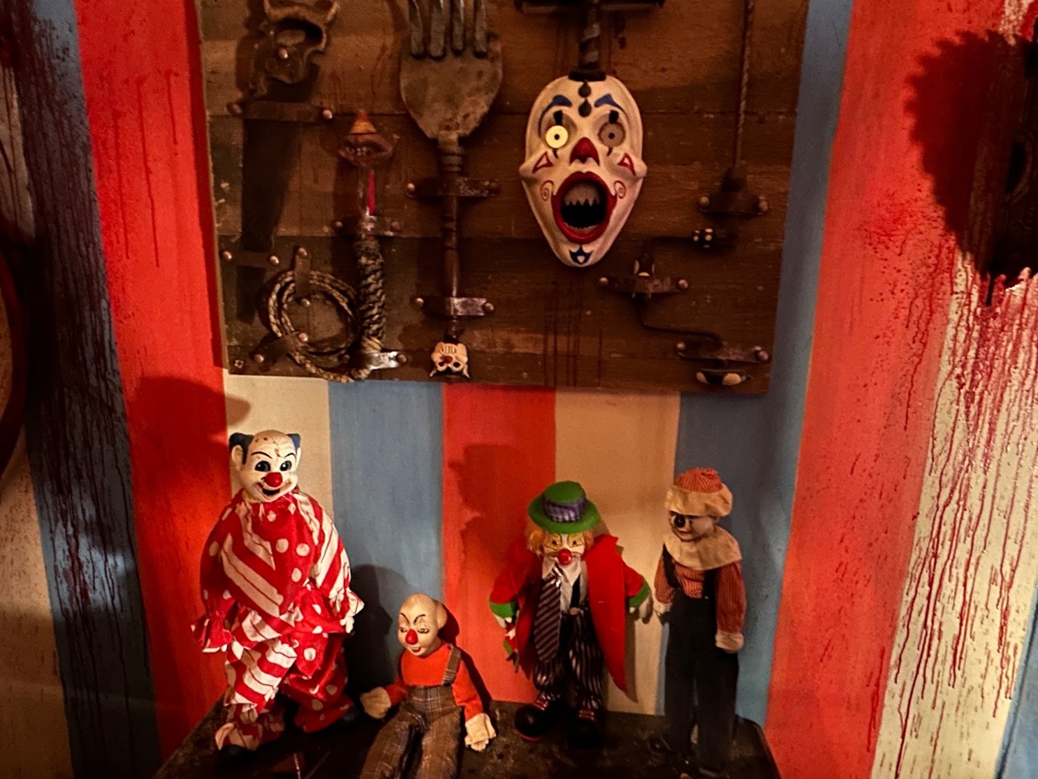 If you’ve seen the Terrifier movies, you know they are about as extreme as you can get when it comes to onscreen gore and depicting outrageously gross moments. And Murdy promised (or cautioned, depending on your POV) that will all be part of the house too, including “The most iconic, infamous kill from the first Terrifier movie, which is the hacksaw kill." I’ll skip describing exactly what occurs in this scene – if you know, you know – but Murdy knew people would immediately wonder just how much they would be willing to include from the films, recalling “When we announced this to our fans, they were like ‘Oh, you're not really gonna do the…’ ‘Yeah, we are!’" He added, “That's Terrifier. That's the whole point. Like, if you're going to do Terrifier, you got to do Terrifier." And the prop we saw of the victim in this scene and the blood and gore already present certainly proved they were very much going there. In fact, even unfinished, the entire house was already filled with outrageously vivid moments we’ll mostly bypass in these photos for those who might need a bit more prep before they’re ready to go full Terrifier.