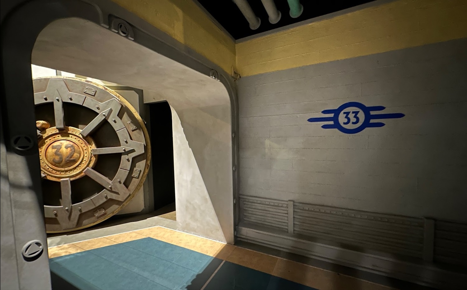 You will then walk through to Vault 32, and Murdy said that meant “We had to build a vault door. That is a lot, a lot, a lot, a lot of CNC cutting. I think it's something like 20 something layers of it." Murdy said that hard work was worth it though to make the impressive-looking door, because “This is a super iconic element in the world of Fallout. So you wanted to have a moment where you got to see a big, giant open vault door."