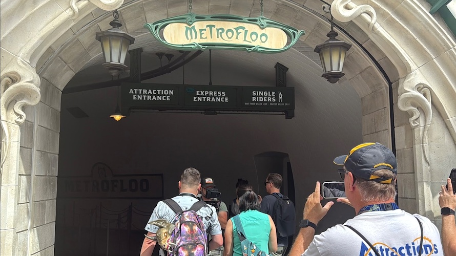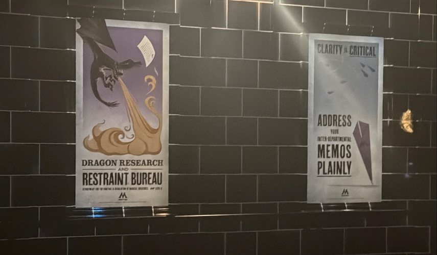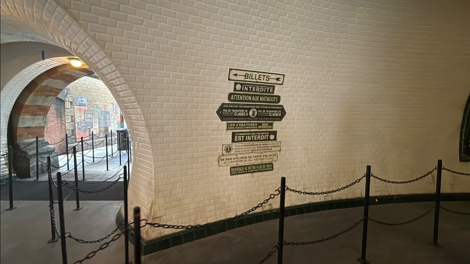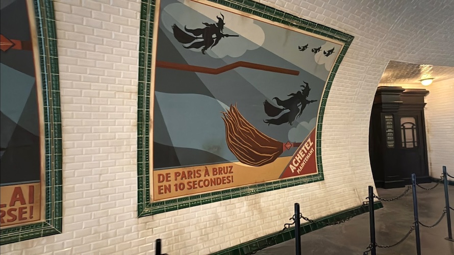 Guests will journey from wizarding Paris to the Ministry via the Métro-Floo – a unique mode of transportation inspired by the iconic Floo Network from the films. But prior to that, you’ll walk through a tunnel which is reminiscent of the Paris subway system – complete with Wizarding World appropriate advertisements.