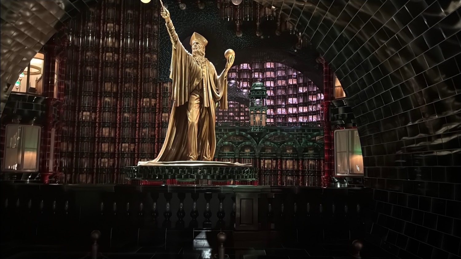 The jaw-dropping grand atrium of the Ministry of Magic comes to life in all its grandeur in the queue for the attraction. Here, guests will find a restored Fountain of Magical Brethren statue, the breathtaking enchanted weather ceiling, an endless array of Ministry offices from floor to ceiling and many more intricate details for guests to discover while inside.