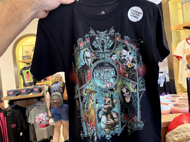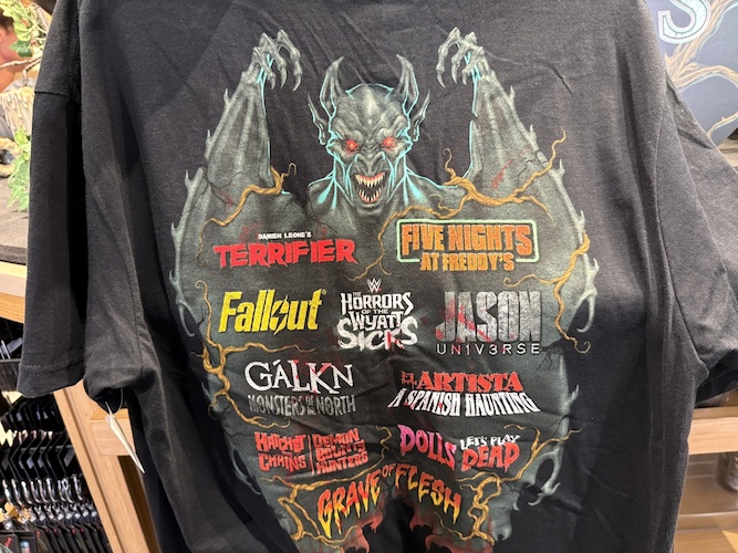 The shelves of this year’s Halloween Horror Nights are fully stocked with tons of new merchandise celebrating the event and the IP that is highlighting this year’s Haunted House catalog. Fans will find everything from apparel to glassware, accessories, and more featuring classic Halloween Horror Nights looks, along with Terrifier, Fallout, Five Nights at Freddy’s and more.