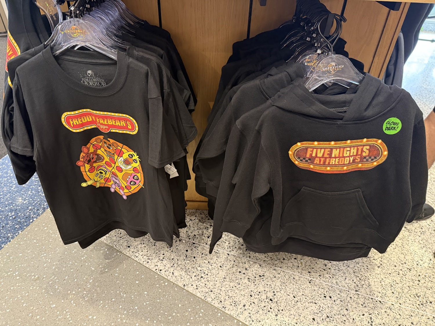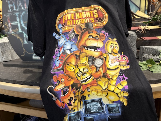 Typically a must-have every year, there is, of course, the standard t-shirt that depicts each of the houses during the event this year, lined up in almost a checklist of sorts. Then, it’s all in on characters we know, whether they be from Five Nights at Freddy’s or even the popular HHN character - Lil’ Boo.