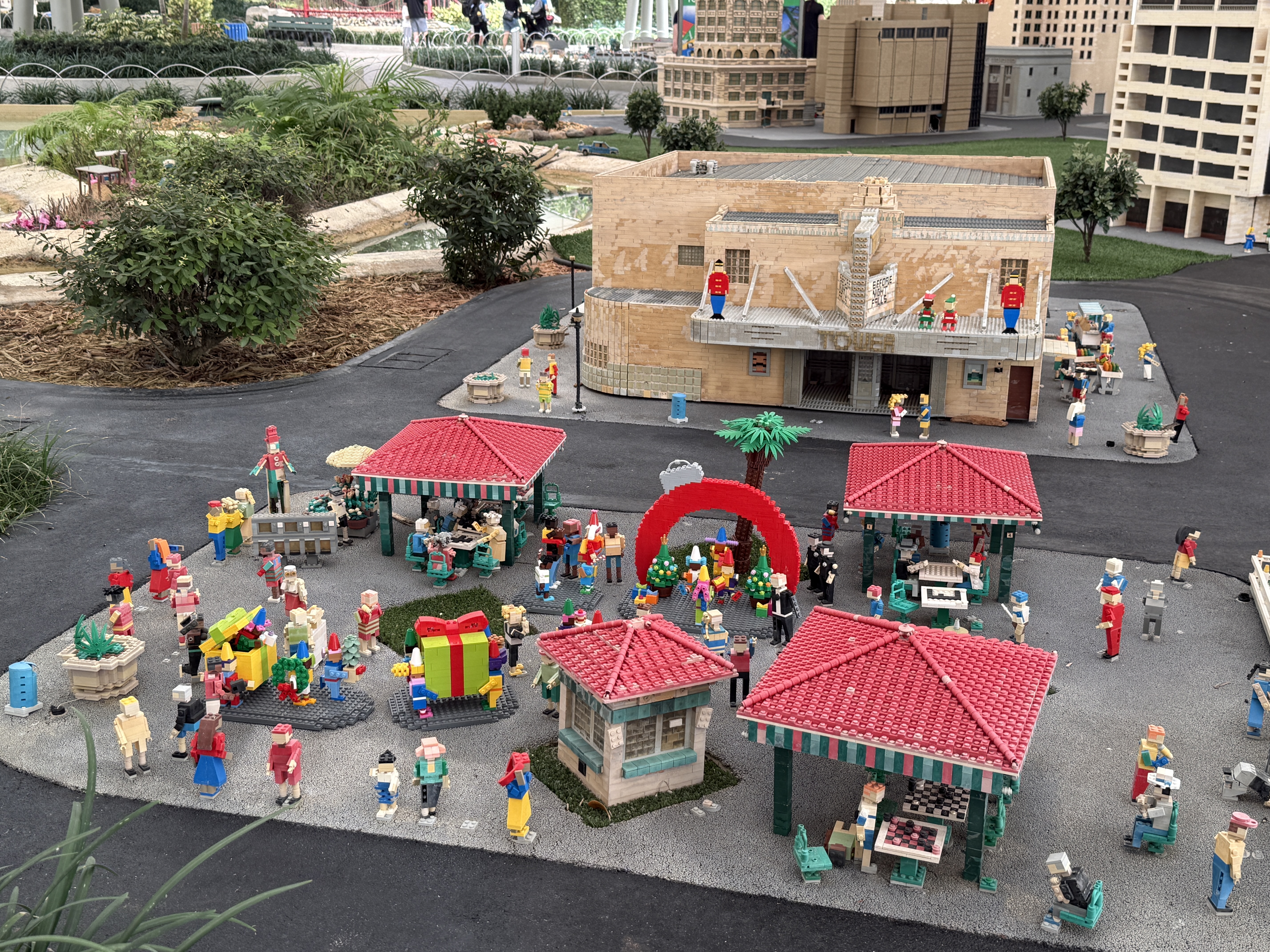 LEGO figures of holiday stalwarts like Santa Claus, elves, and much more can be found throughout the park.