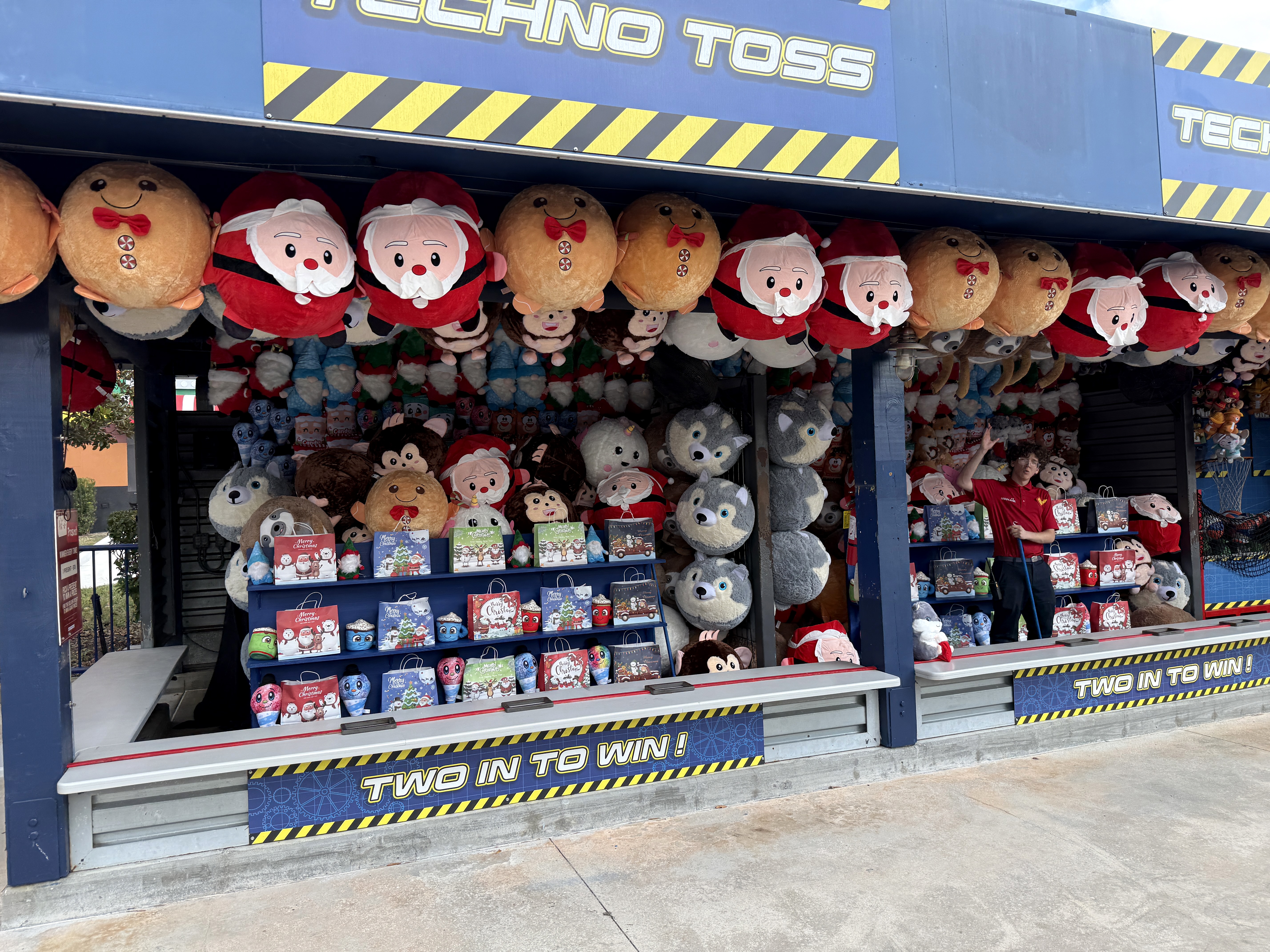 At the Techo Toss midway game, you can win some fun giant Christmas plush.