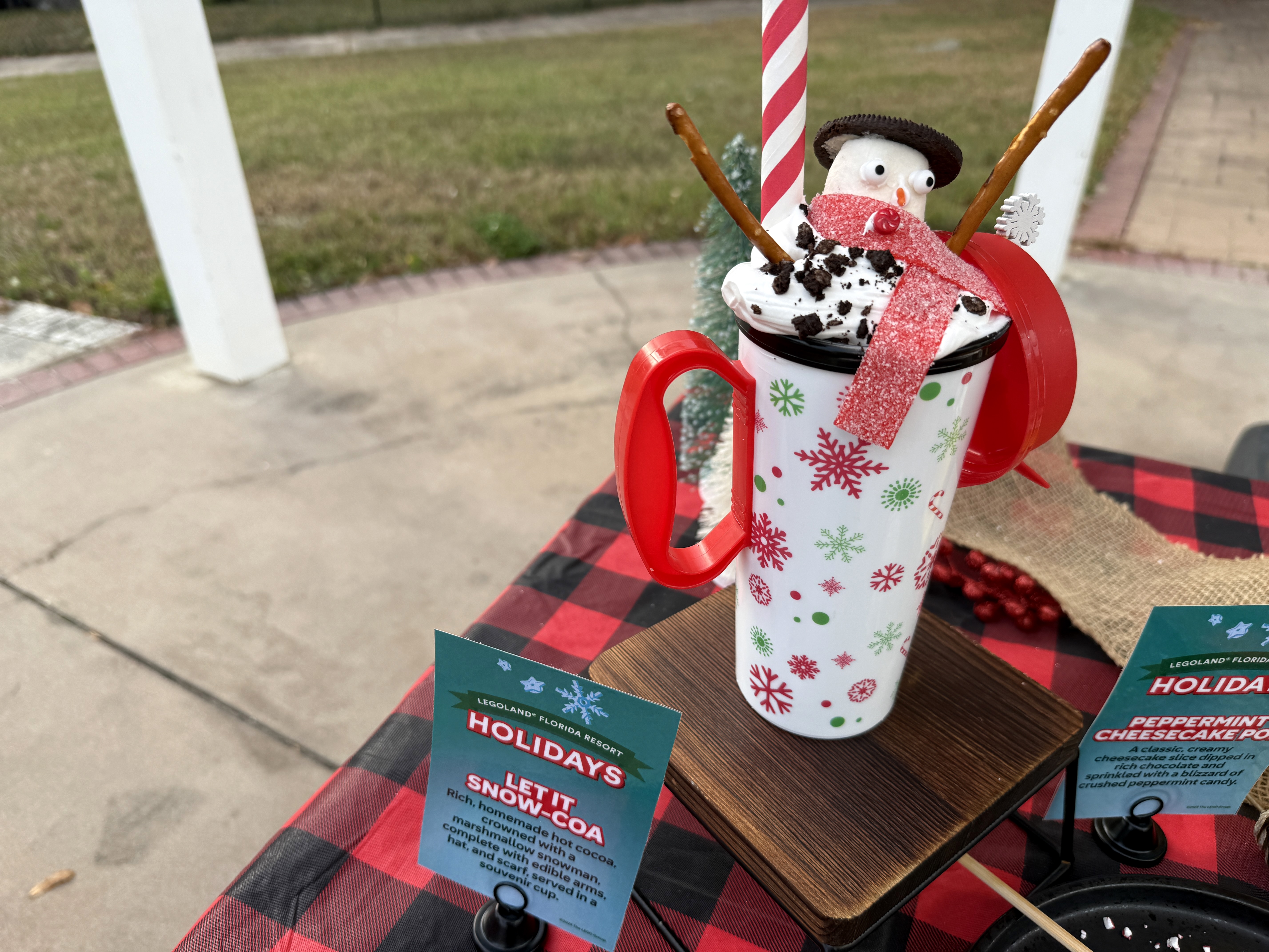 - Let it Snow-coa (LEGOLAND Coffee Co.) – Rich, homemade hot cocoa, crowned with a marshmallow snowman, complete with edible arms, hat, and scarf, served in a souvenir cup.