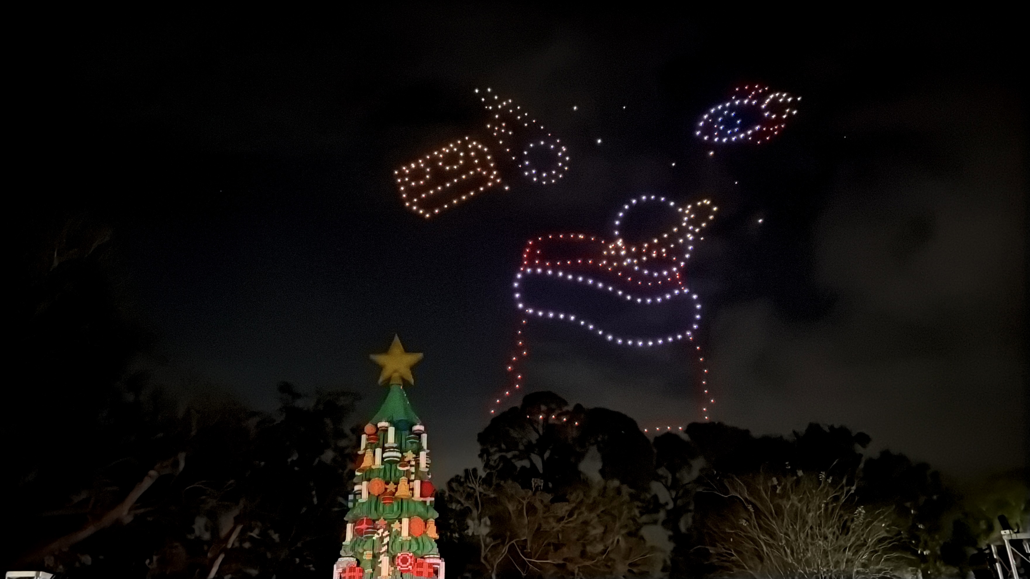 As night falls, the brand-new LEGO Christmas tree introduced last night was lit up for the season, with the assistance of drones! These drones also revealed that LEGOLAND Florida's new roller coaster, Galacticoaster, will officially open on February 27th, 2026.