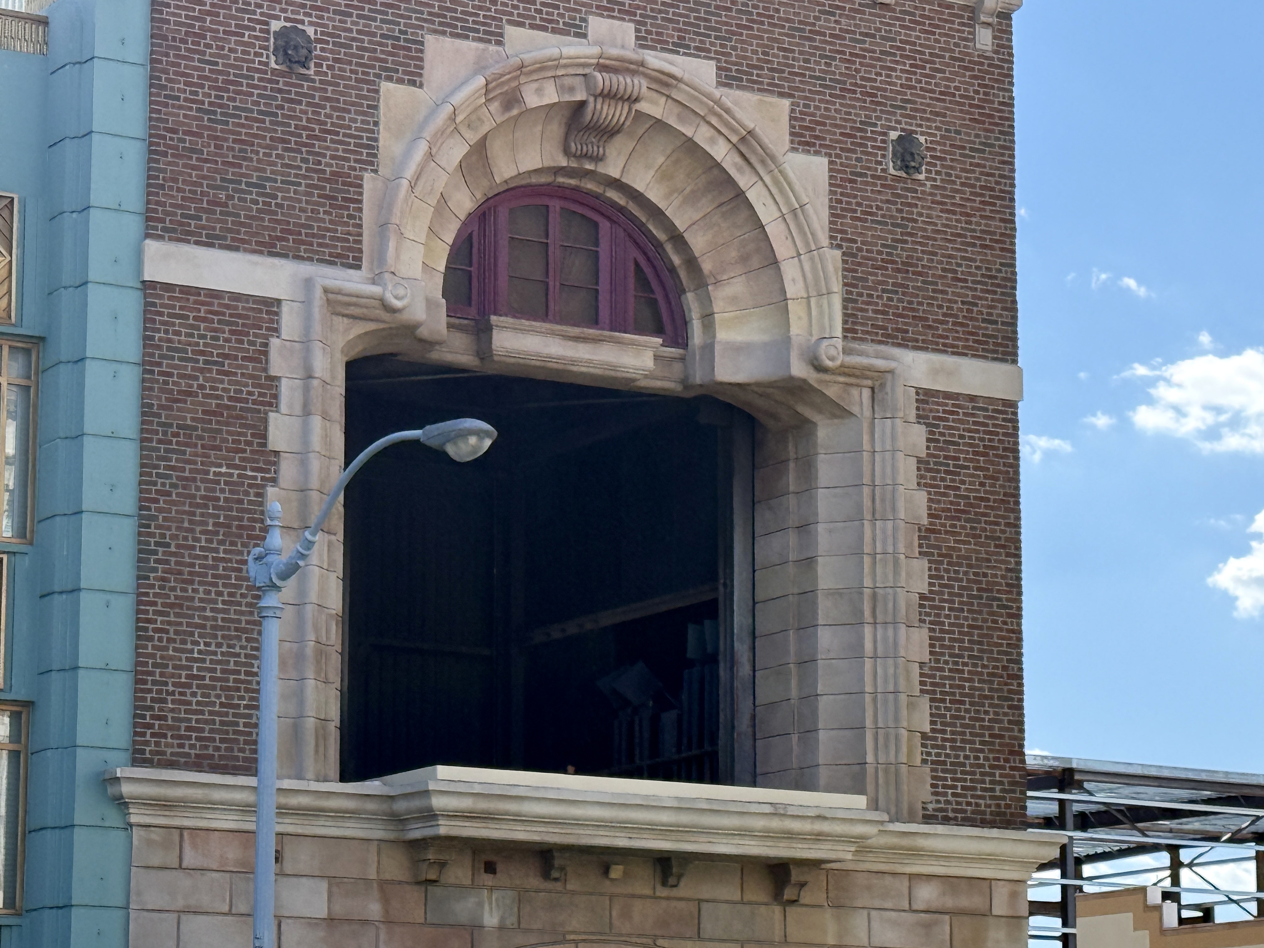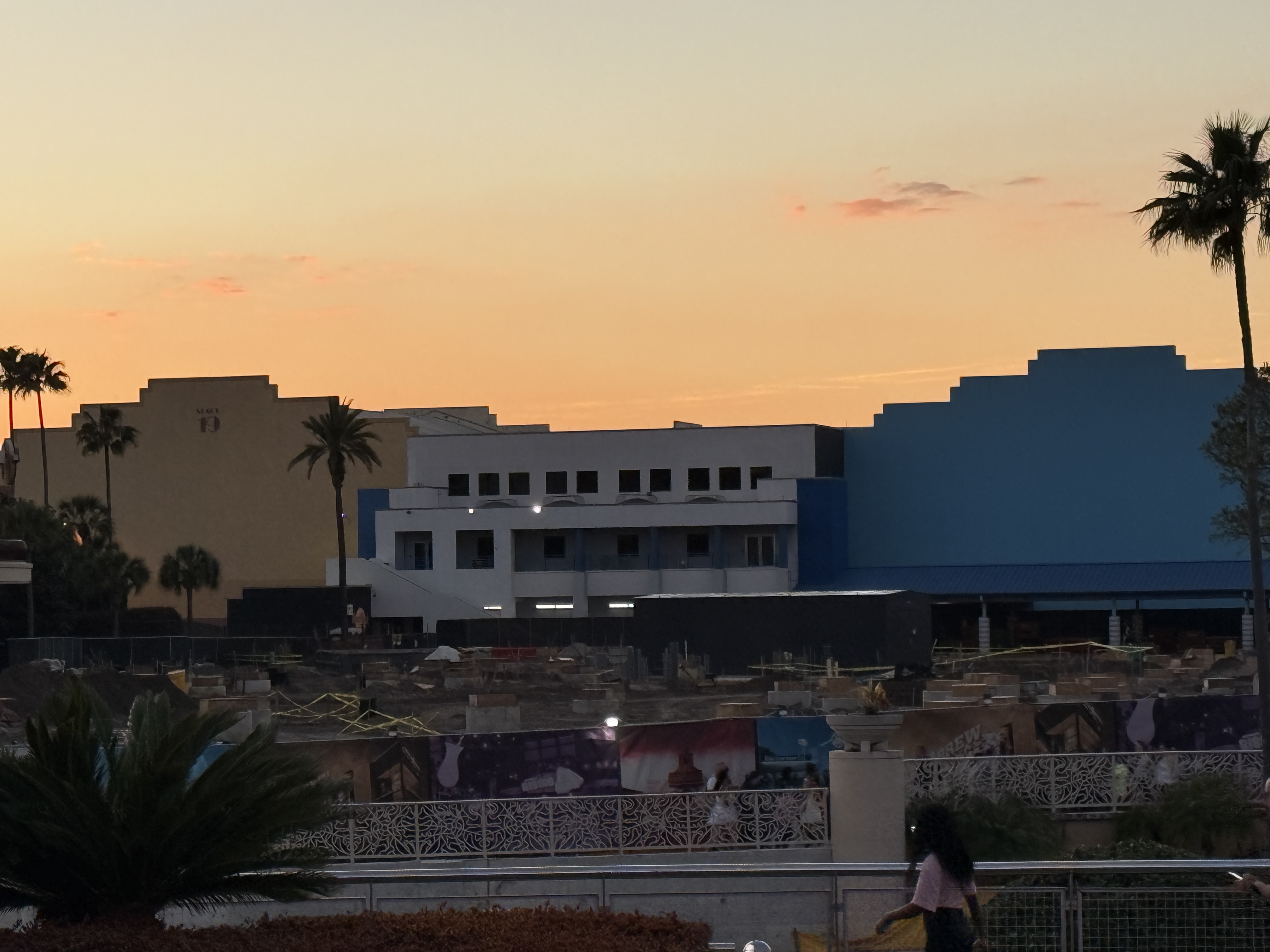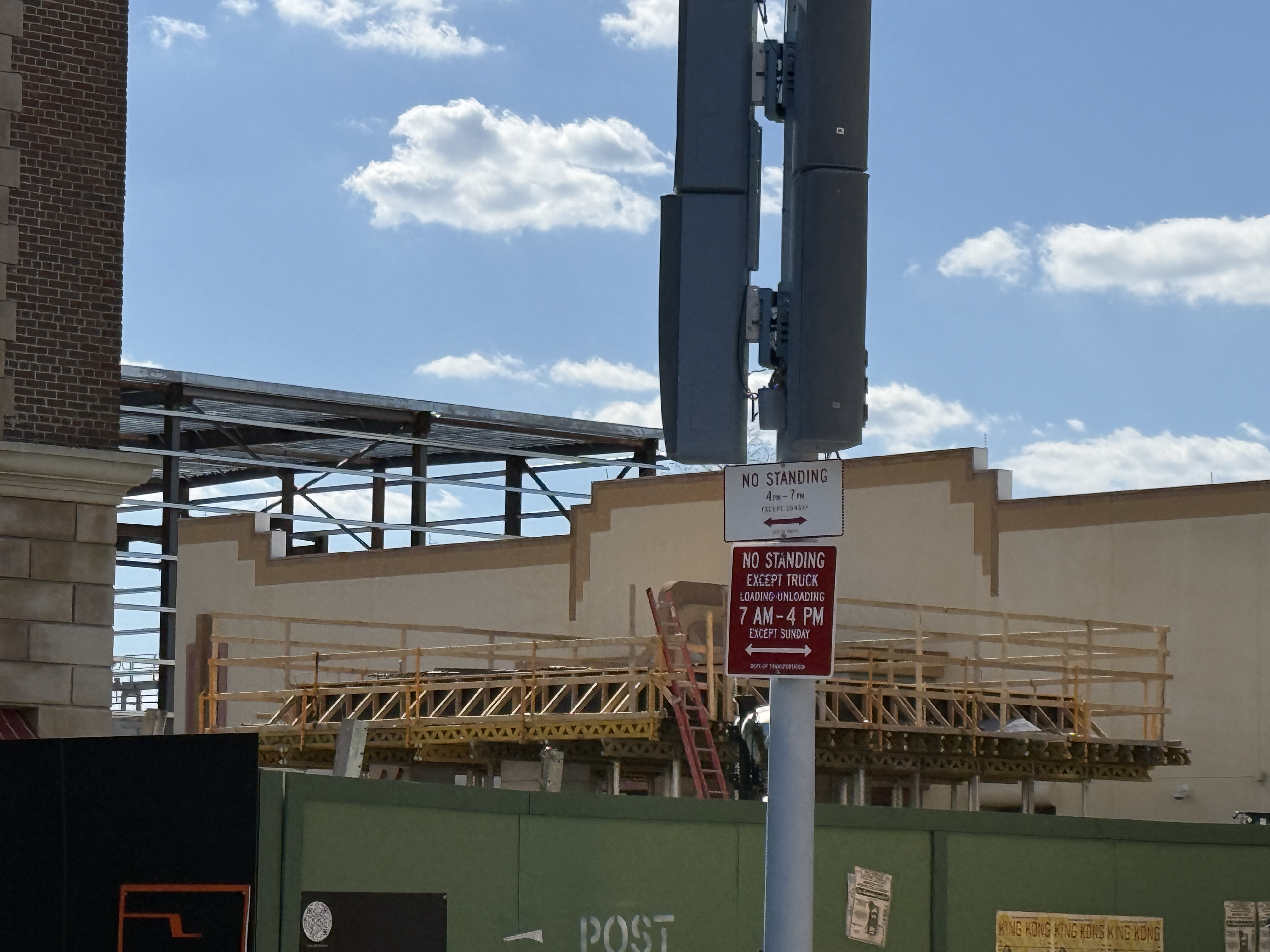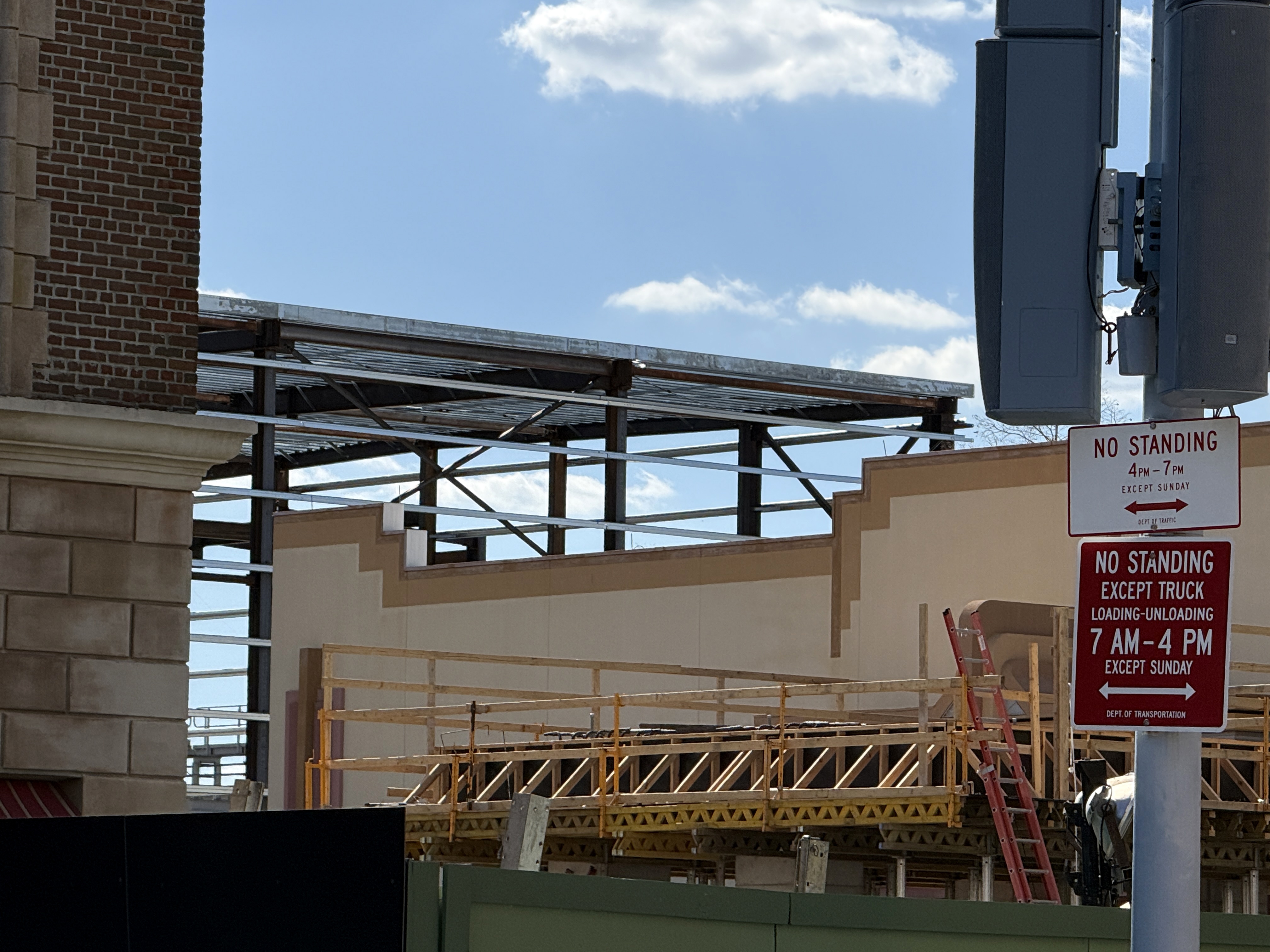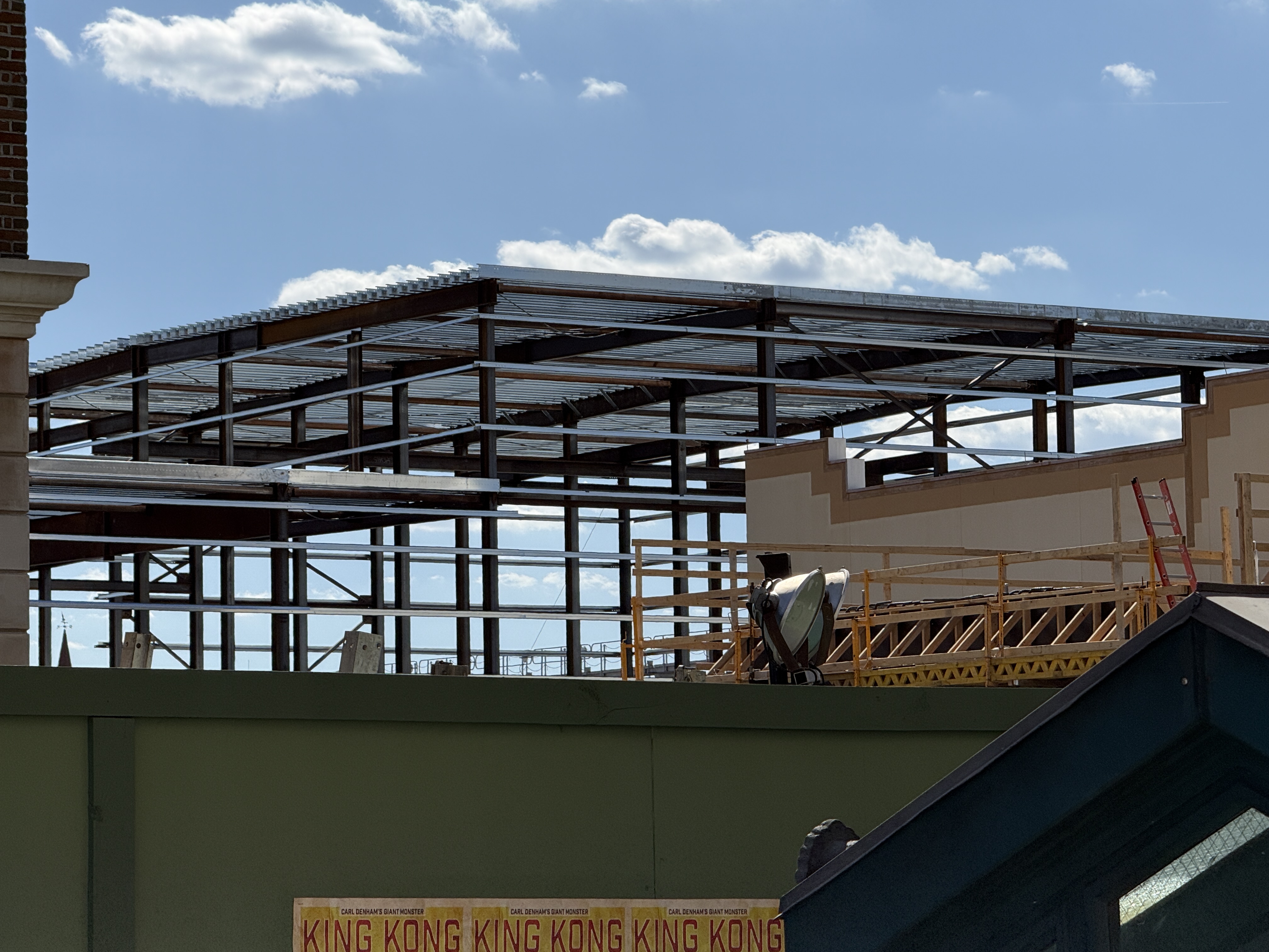 To the left of the New York Public Library facade and Stage 33, a massive new show building for the attraction is being constructed.