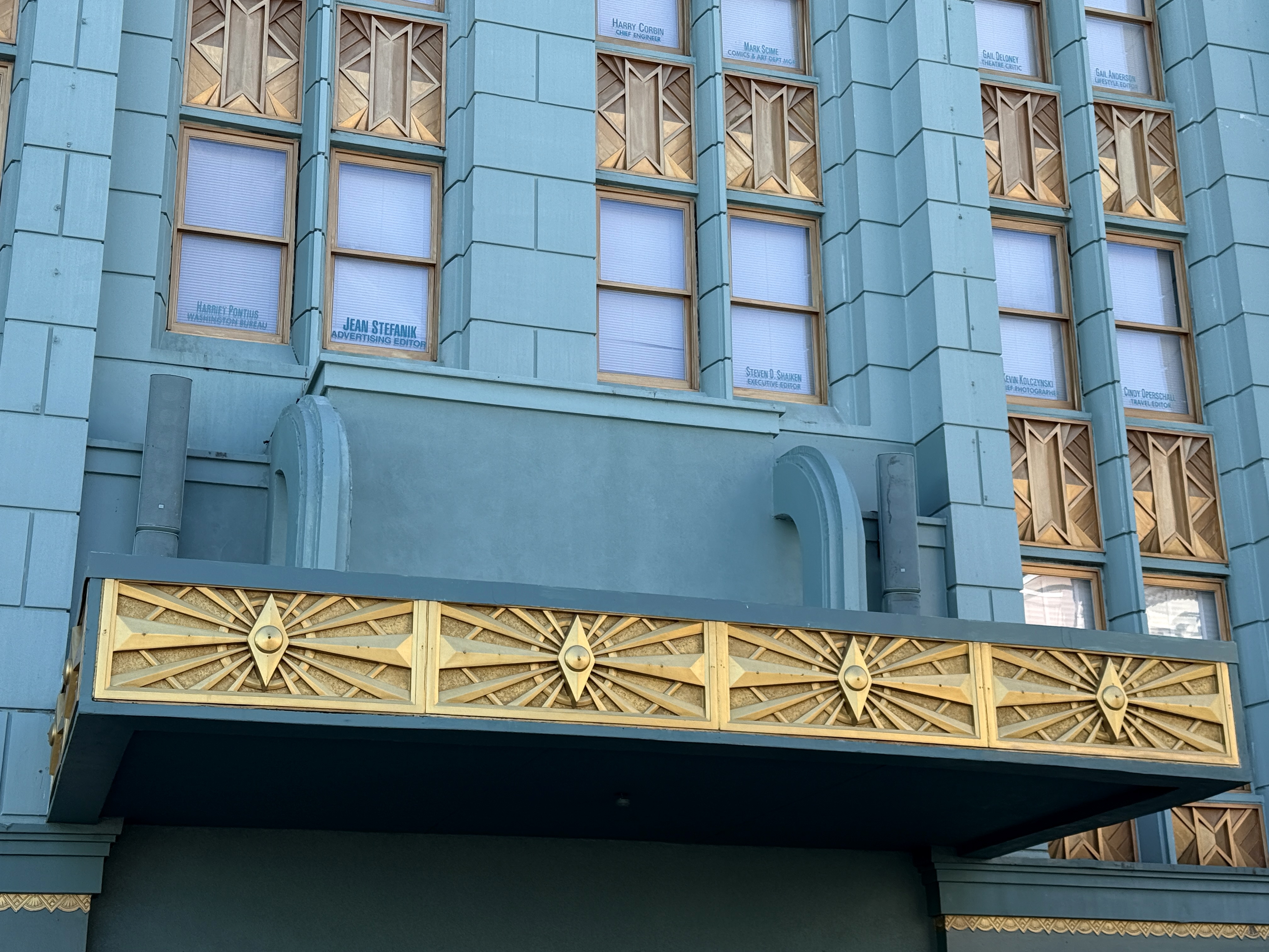 The Metropolis Tribune signage has been removed from this facade, next to the firehouse.