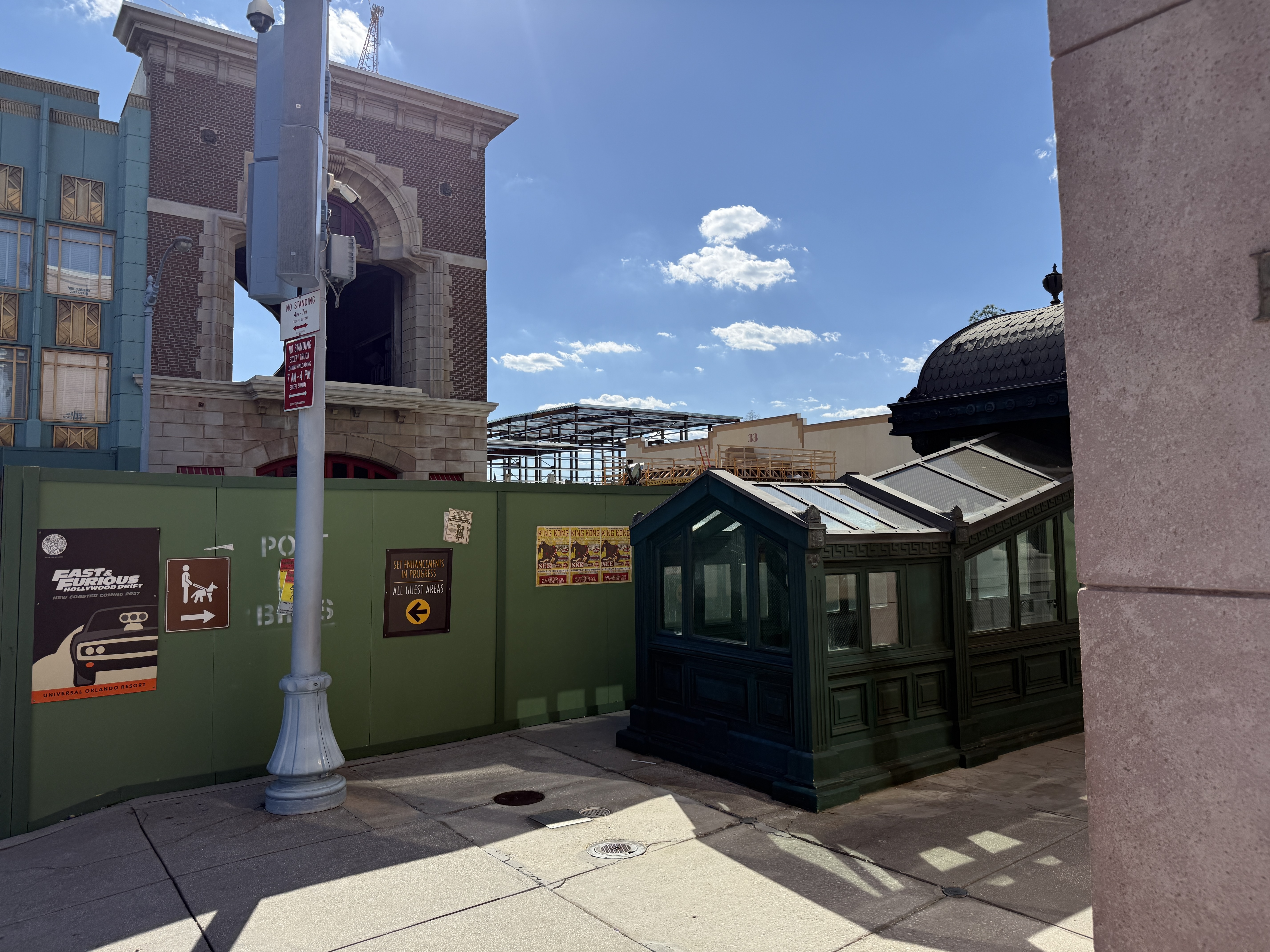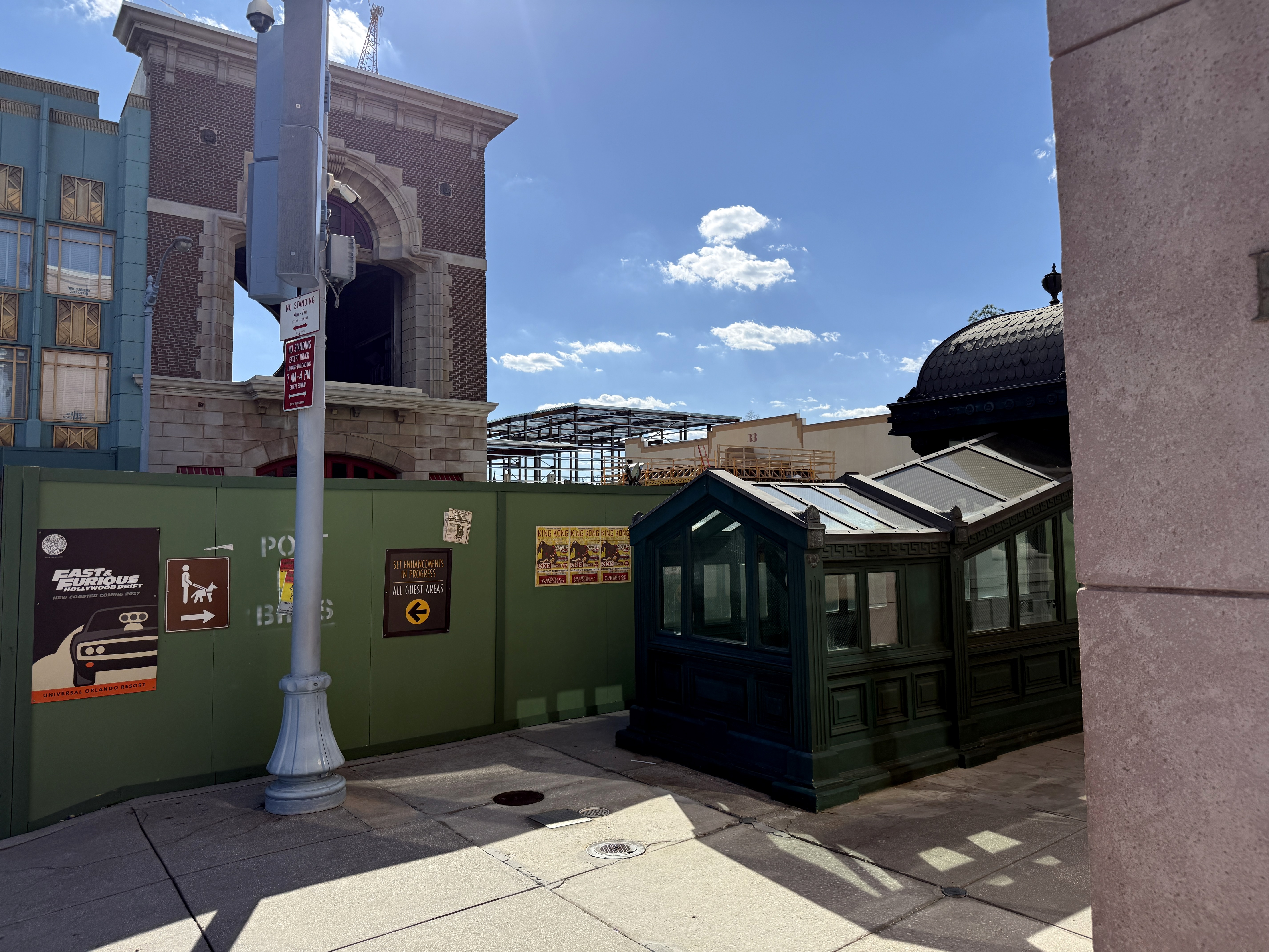Construction walls at the back of the New York section of the park, which have been up since the closure of Hollywood Rip Ride Rockit – now features Fast & Furious: Hollywood Drift artwork.