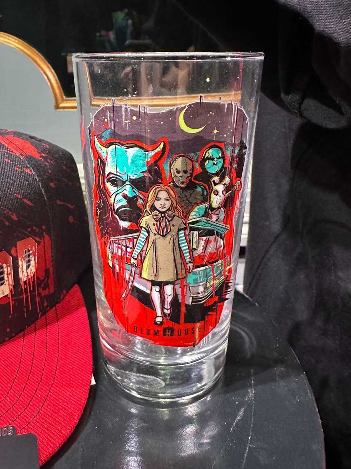 The terrifying icons of Blumhouse once again feature as part of the Terror Tram this year, and you can get them on a souvenir glass cup.