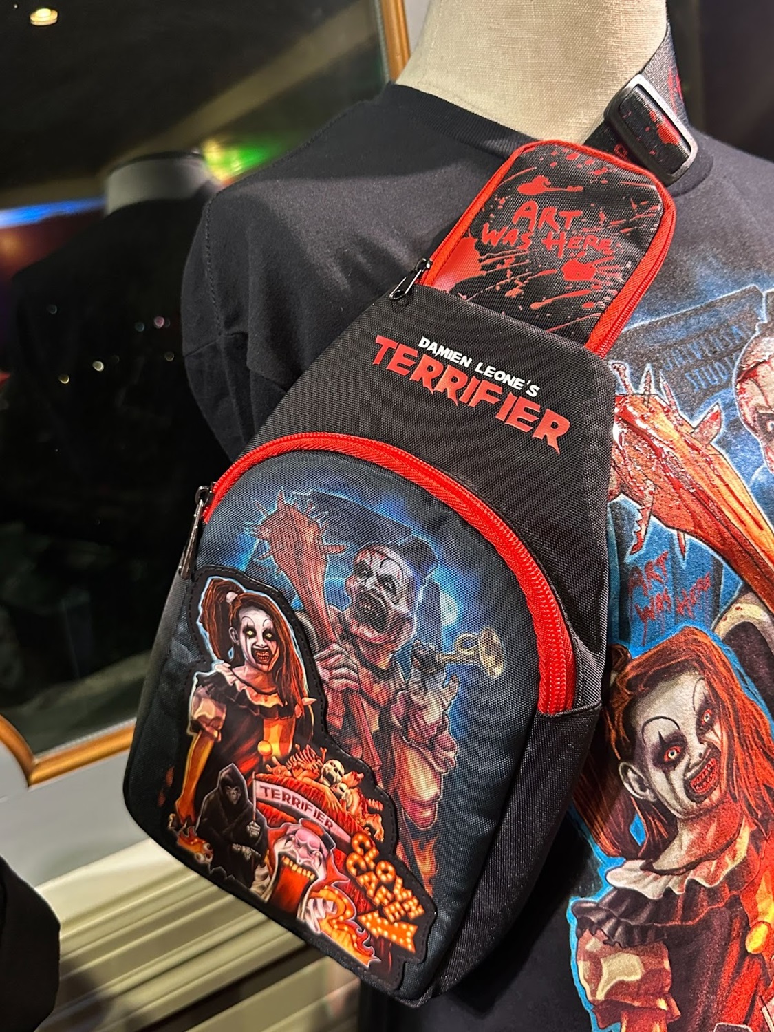 Born from the twisted world of Terrifier, an all-new merch collection based on the highly anticipated haunted house includes a festive holiday sweater, a scream-worthy Art the Clown popcorn bucket, sinister shot glasses, terrifying headwear, and more.