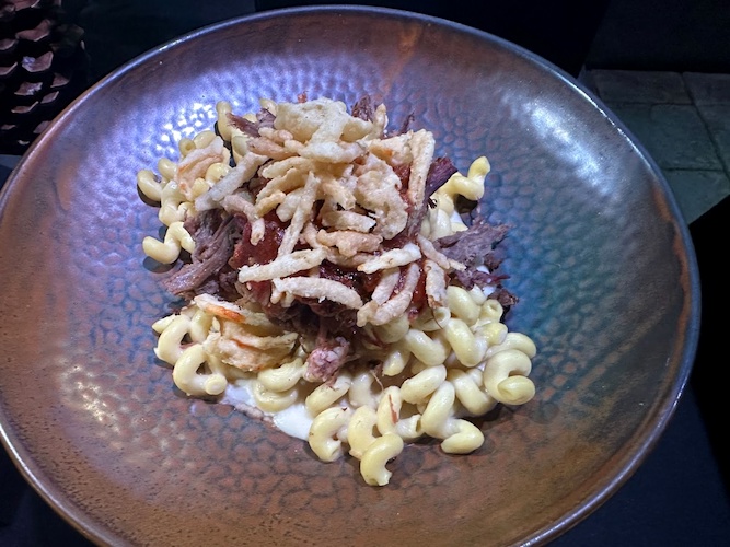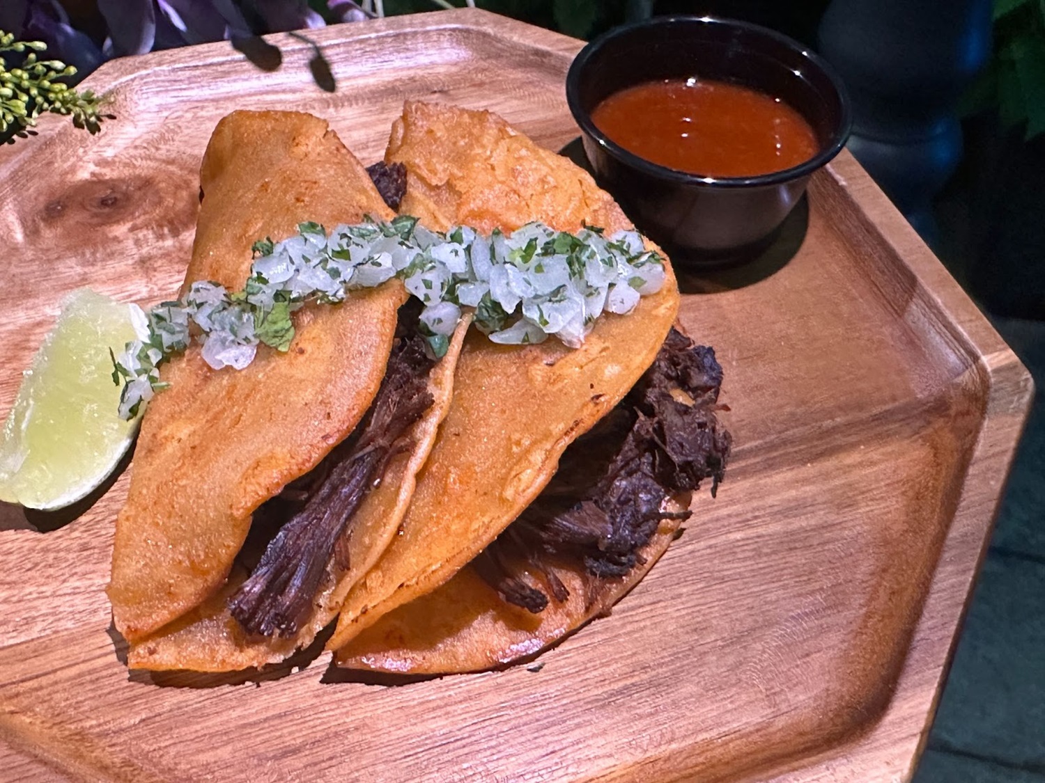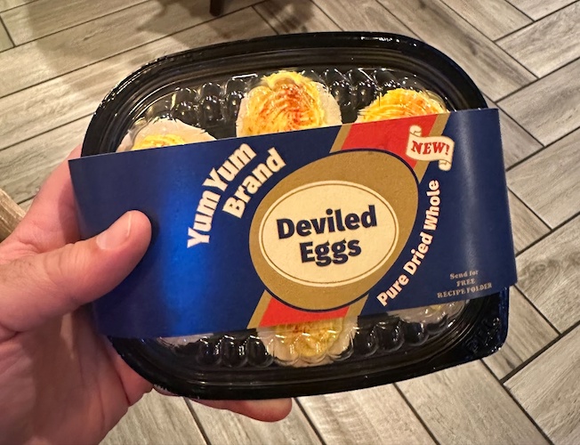 - Yum Yum Deviled Eggs – coconut panna cotta filled with pineapple bits, with a mango topping and tajin