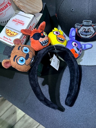 This wonderful headband features the iconic characters from Freddy Fazbear’s Pizza, who if you turn around, reveal a more sinister side.