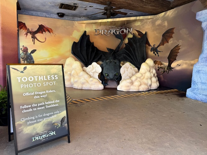 Guests can take a photo with a Toothless photo op, who’s a little less animated than his counterpart over at Epic Universe.