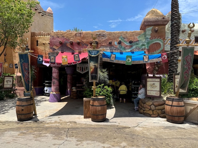 One of the area’s gift shops has received a dragon training makeover, which fits quite nicely as a nod to the former Dueling Dragons roller coaster.