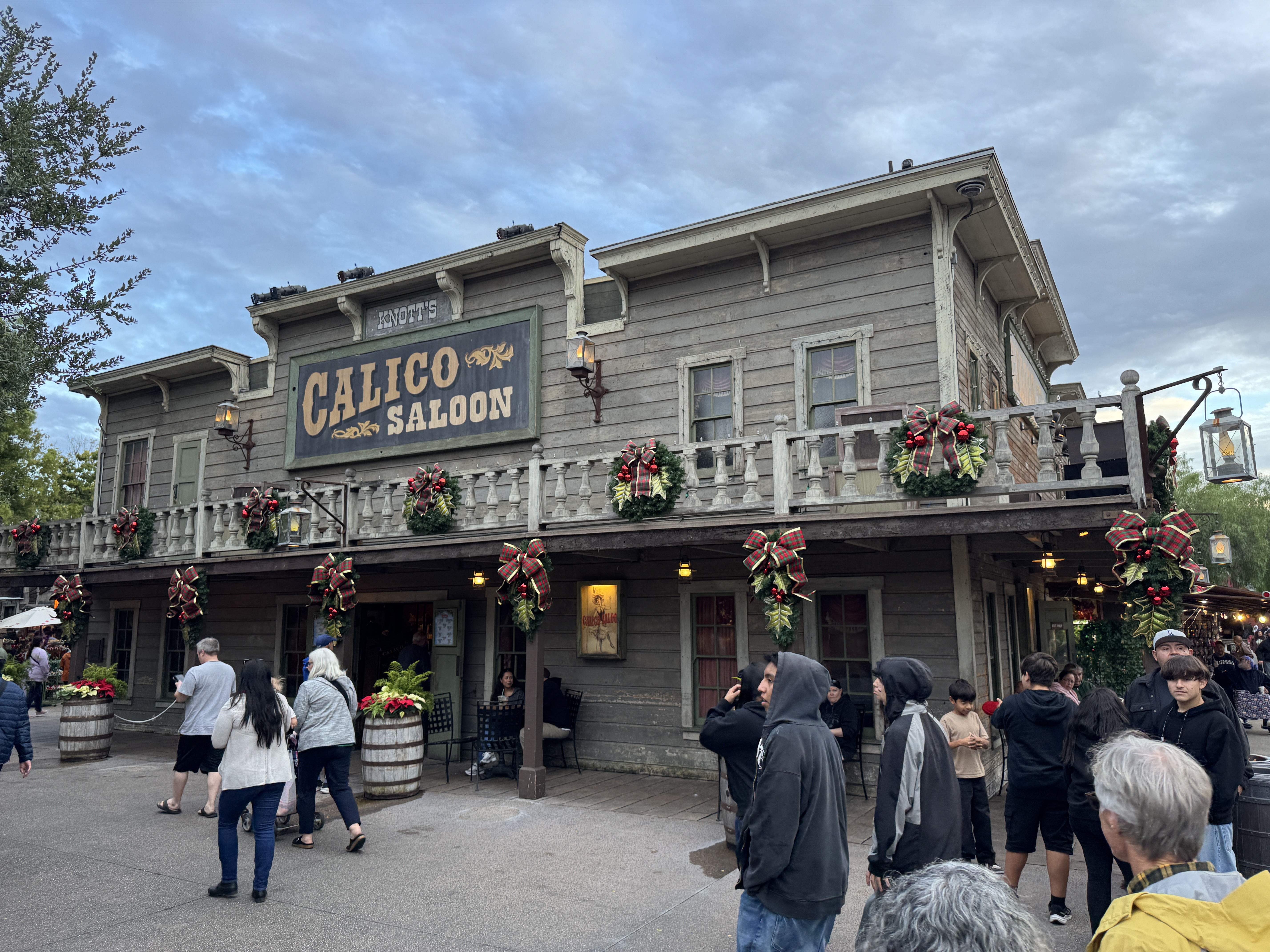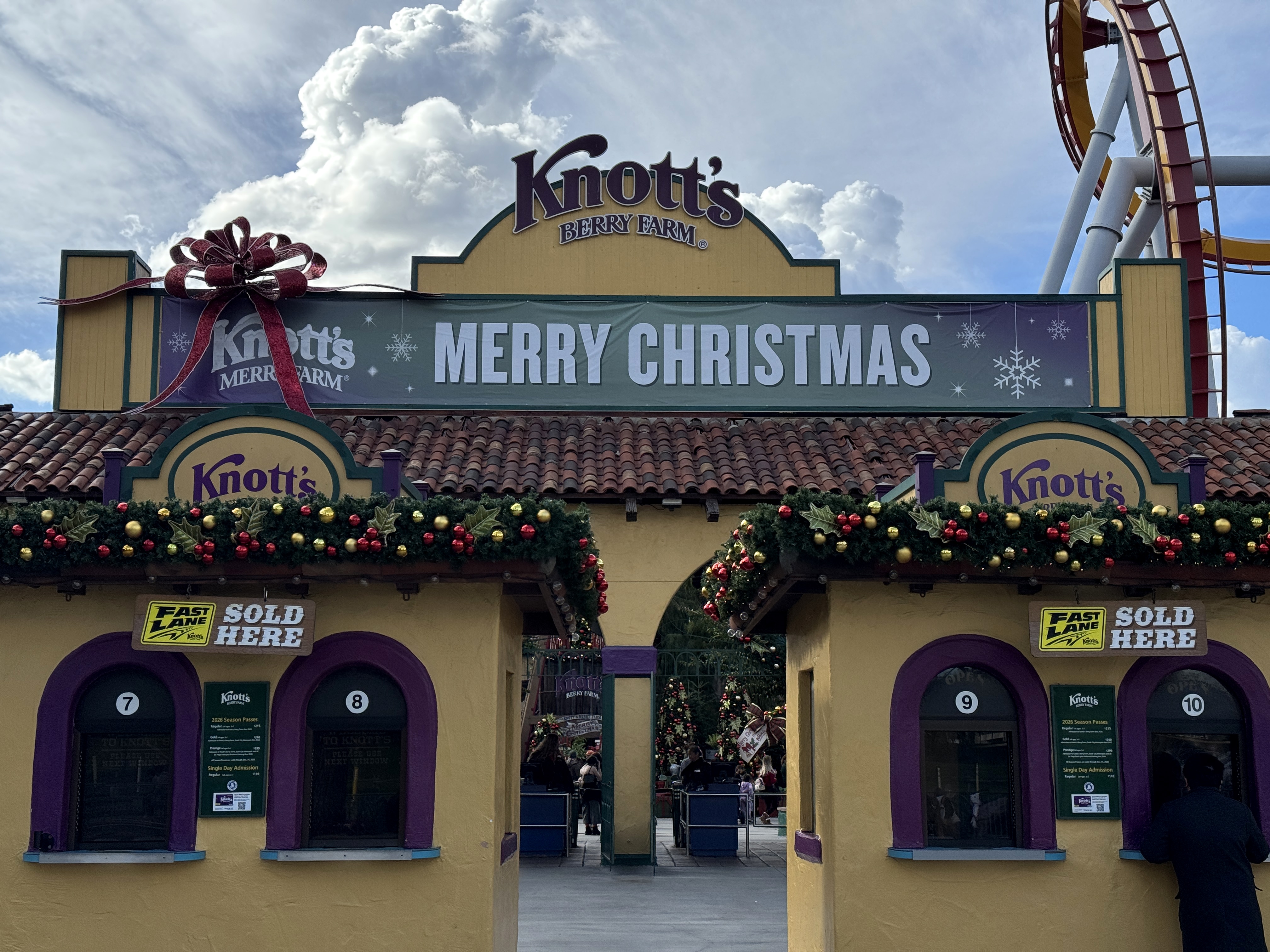 I arrived at Knott's Berry Farm in the early afternoon to find the popular theme park decorated for the holidays with garland, ornaments, and other nice-looking decor.