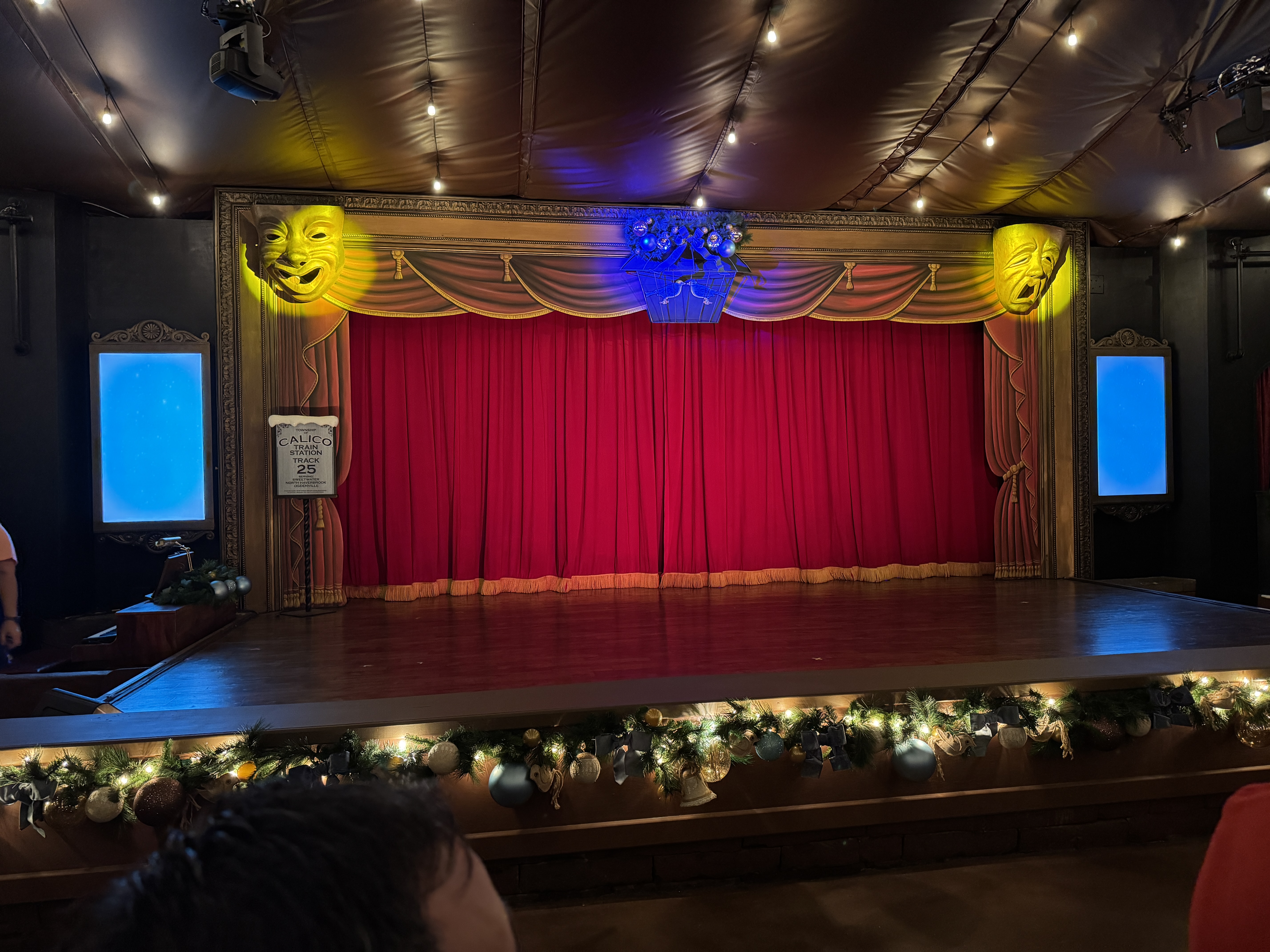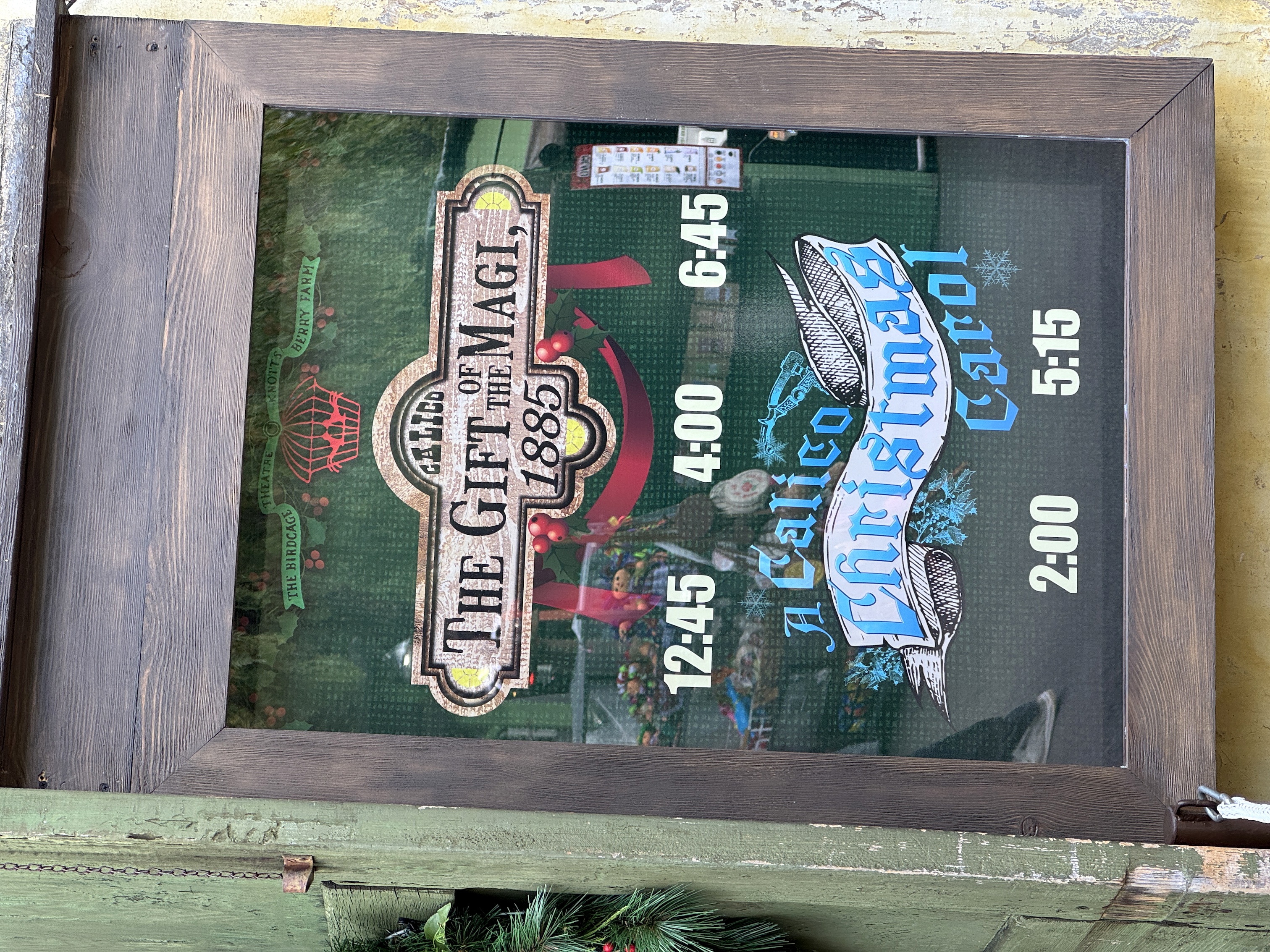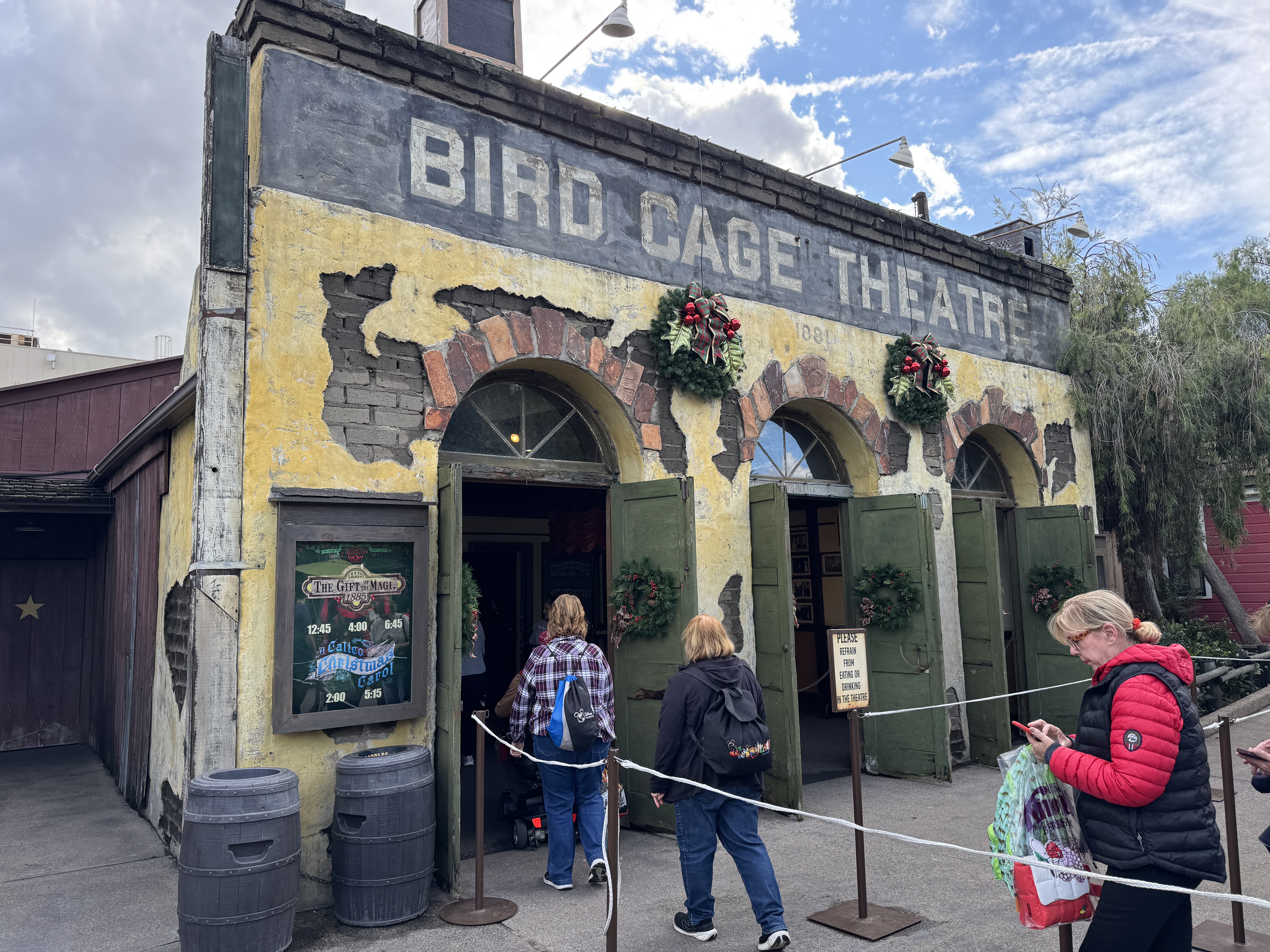 My first stop in the park was the famous Bird Cage Theatre, which for Knott's Merry Farm hosts rotating performances of The Gift of the Magi 1885 and A Calico Christmas Carol.