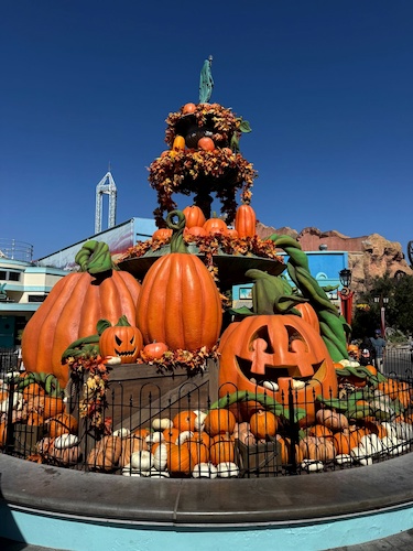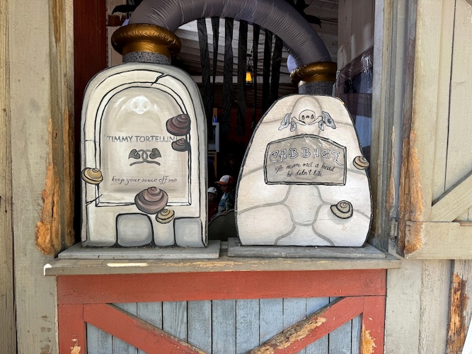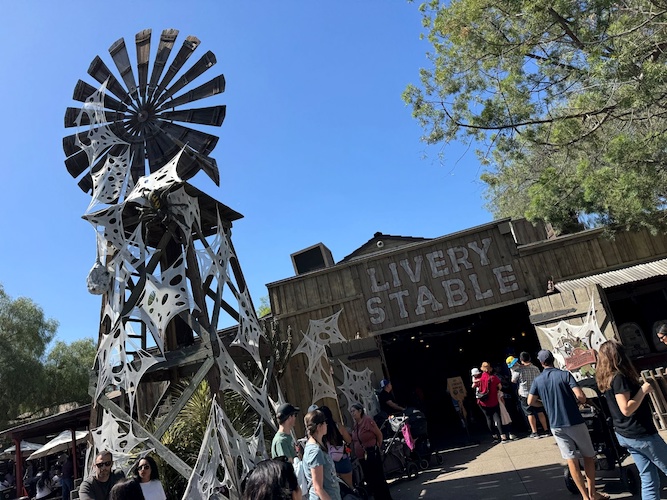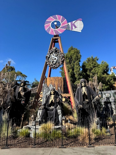 Approaching the entrance to Knott’s Berry Farm, we found banners welcoming us to Knott’s Spooky Farm, and once inside the park we were greeted by the usual impressive seasonal decor.