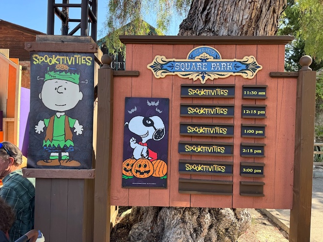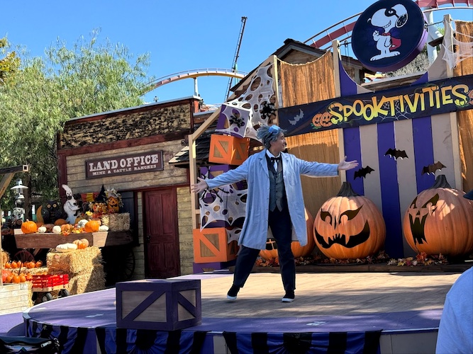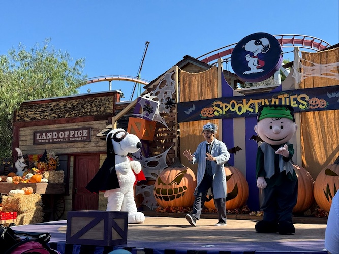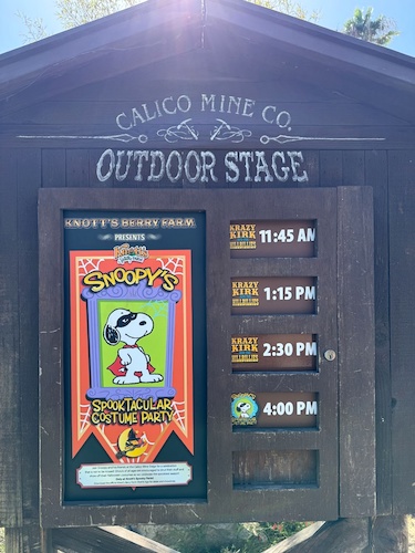 Other Knott’s Spooky Farm shows include Krazy Kirk and the Hillbillies and Snoopy’s Spooktacular Costume Party on the Calico Mine Stage.
