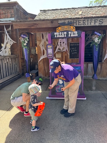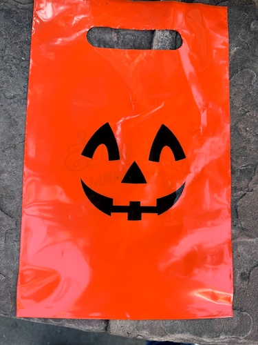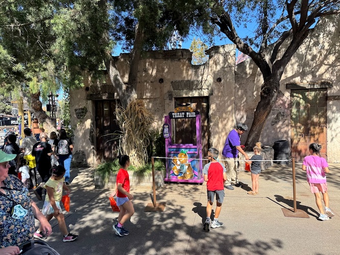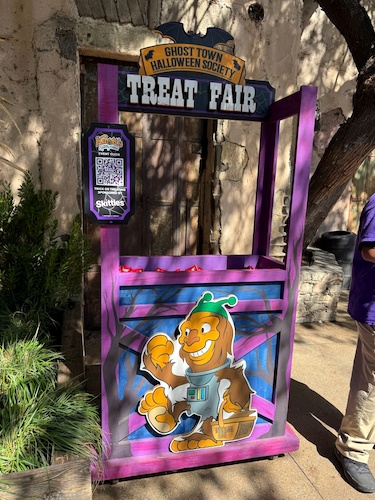 Speaking of kids, youngsters entering Knott’s Spooky Farm are distributed complimentary trick-or-treat bags (pictured below), with which they can visit a number of Treat Fair candy distribution kiosks around Knott’s Ghost Town area.