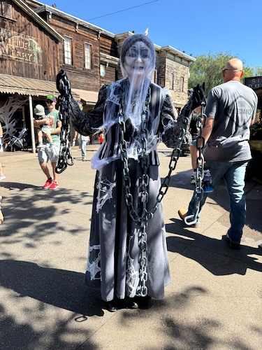 Also in Ghost Town, we spotted several regular Knott’s Berry Farm performers dressed up as ghouls for the season. Interacting with these characters was probably my personal favorite part of Knott’s Spooky Farm 2025.