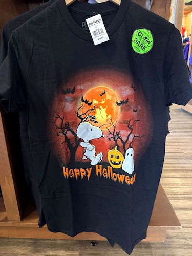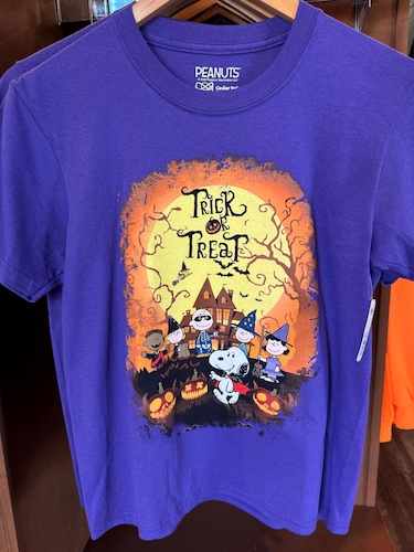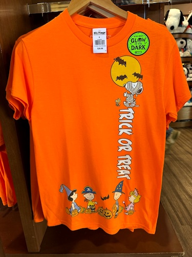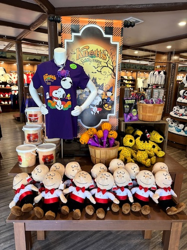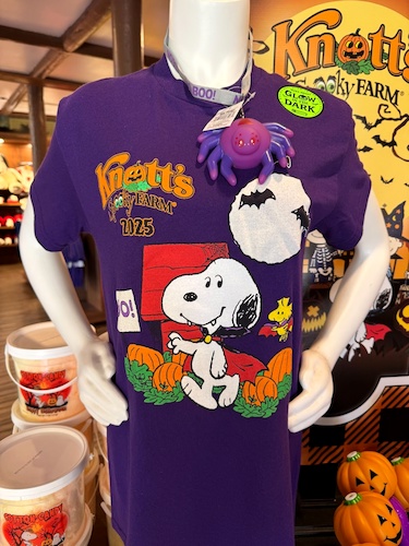 And we can’t leave Knott’s Spooky Farm without taking a look at some of this year’s merchandise and apparel for the event, featuring Snoopy, Charlie Brown, and the rest of the Peanuts gang.