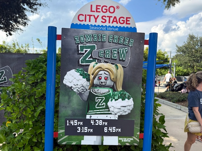 The popular Zombie Cheer Crew show has a new home this year at the LEGO City Stage in the back of the park next to LEGO NINJAGO World.