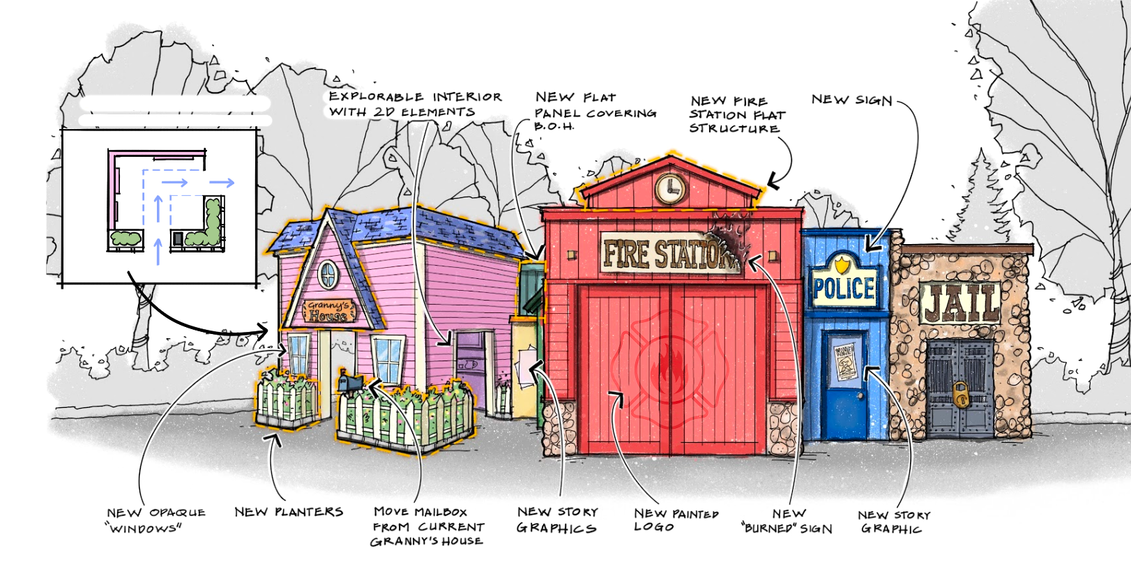 - Wascal’s, the area’s restaurant, will undergo a refresh, including a retheming of the scenic buildings and the addition of picnic tables to give guests a feel of dining at a civic park.