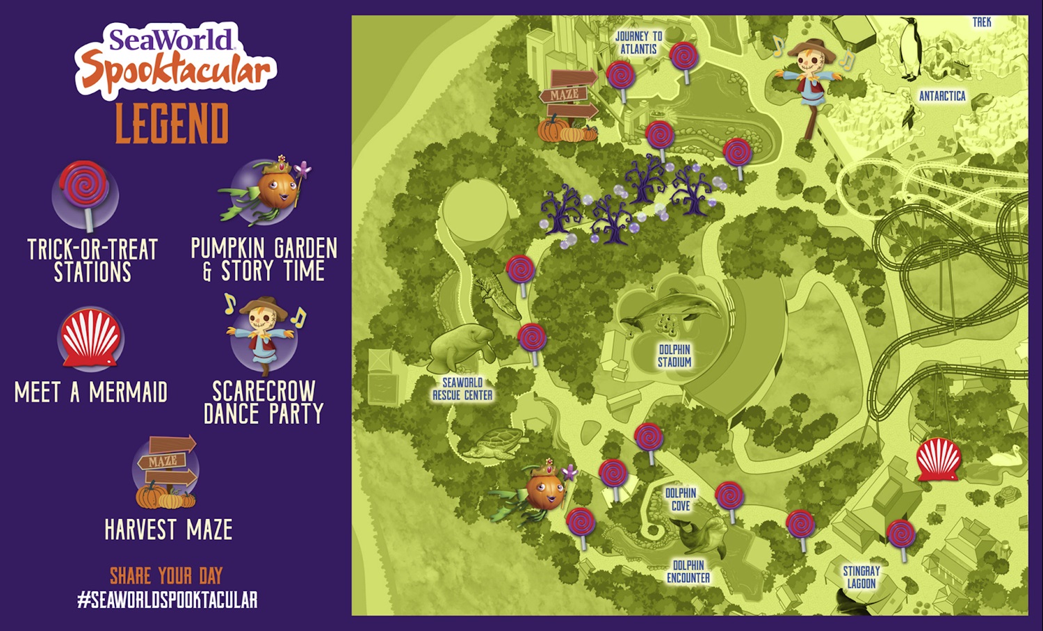 - Costumes Welcome – All guests are invited to wear their Halloween best. Children and adults alike can dress up in favorite characters or seasonal attire, though guests 13 and older may not wear costume masks or hoods. Face painting is permitted only if done by SeaWorld artists.