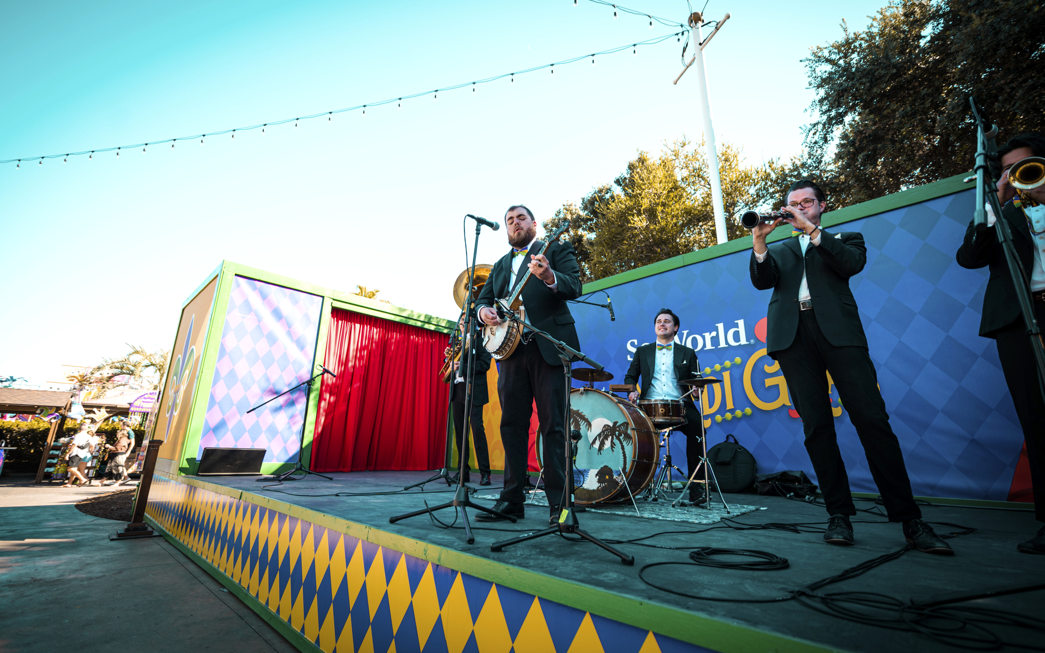 - Mardi Gras Performers & Activities – Visit the SkyTower stage area to see SeaWorld performers in festive costumes and enjoy family-friendly activities throughout the day.