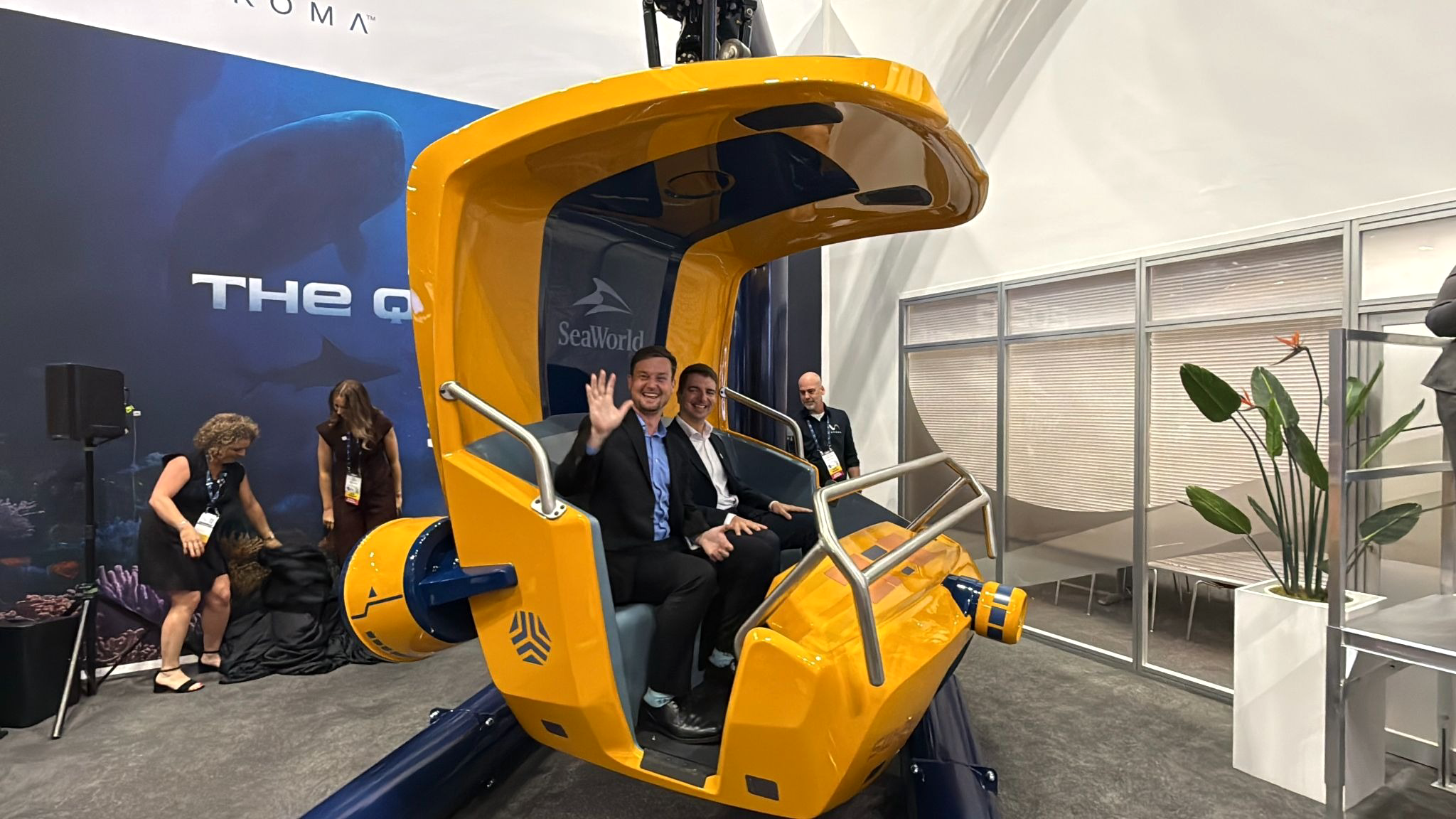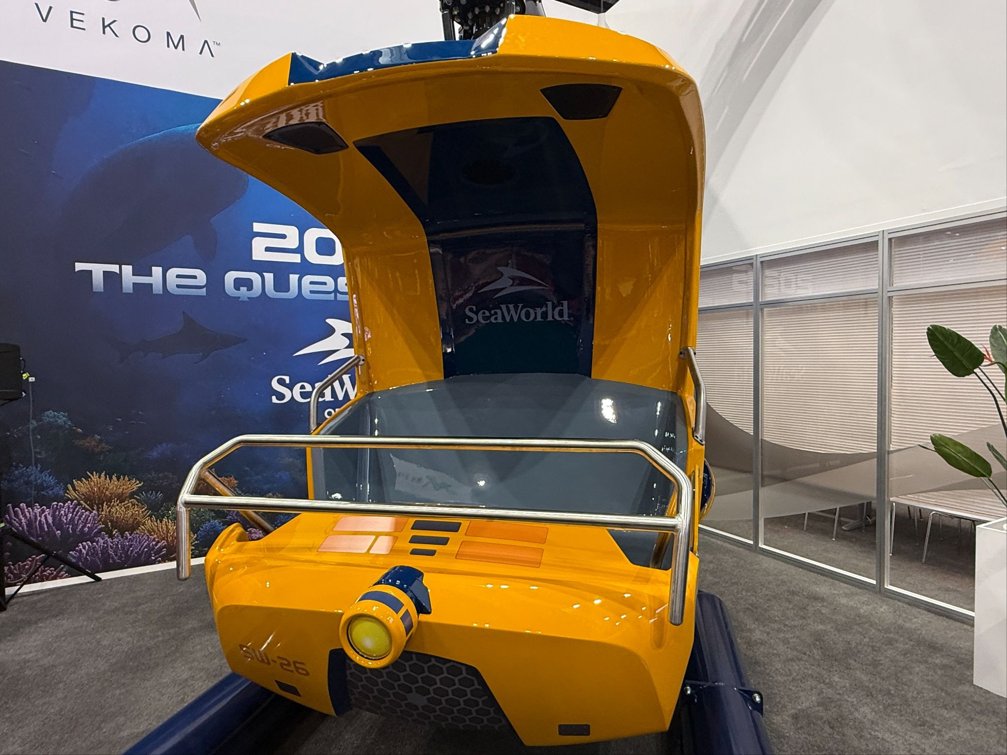 Next year, SeaWorld Orlando is gearing up to welcome guest into a dark ride journey into the deep ocean with SEAQuest: Legends of the Deep. Today, at IAAPA 2025, representatives from the park joined ride manufacturer Vekoma to reveal one of the attraction’s ride vehicles.