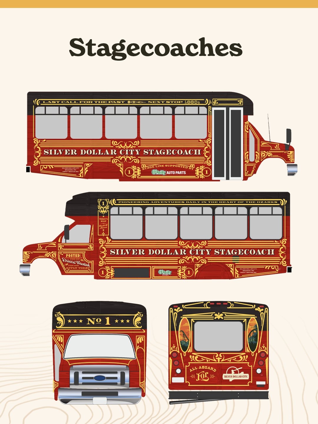 - The new transportation offerings will roll out in phases, with the Stagecoach expected to begin making rounds at Silver Dollar City this fall.