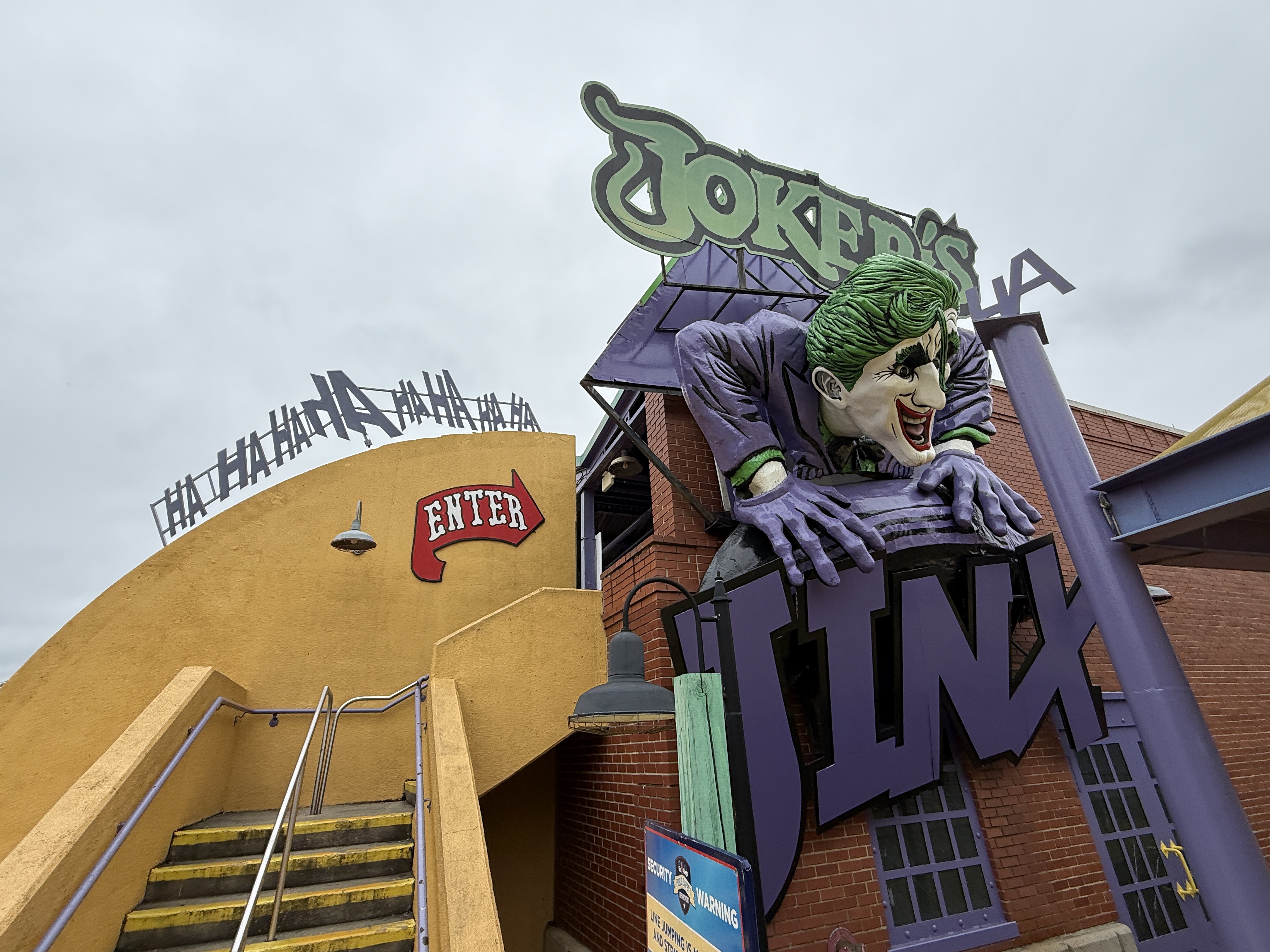 The Joker's Jinx is a clone of a launch coaster that I've previously experienced at Six Flags Fiesta Texas – Poltergeist. That version of the attraction was extra impressive, thanks to a wonderfully haunted themed queue. There's not as much theming here, more so just over-the-top Joker lettering. Fortunately, it's still an excellent coaster. Think of it as Rock ‘n Roller Coaster at Disney’s Hollywood Studios, but outside, much smoother, a little more intense, and only a lap bar.