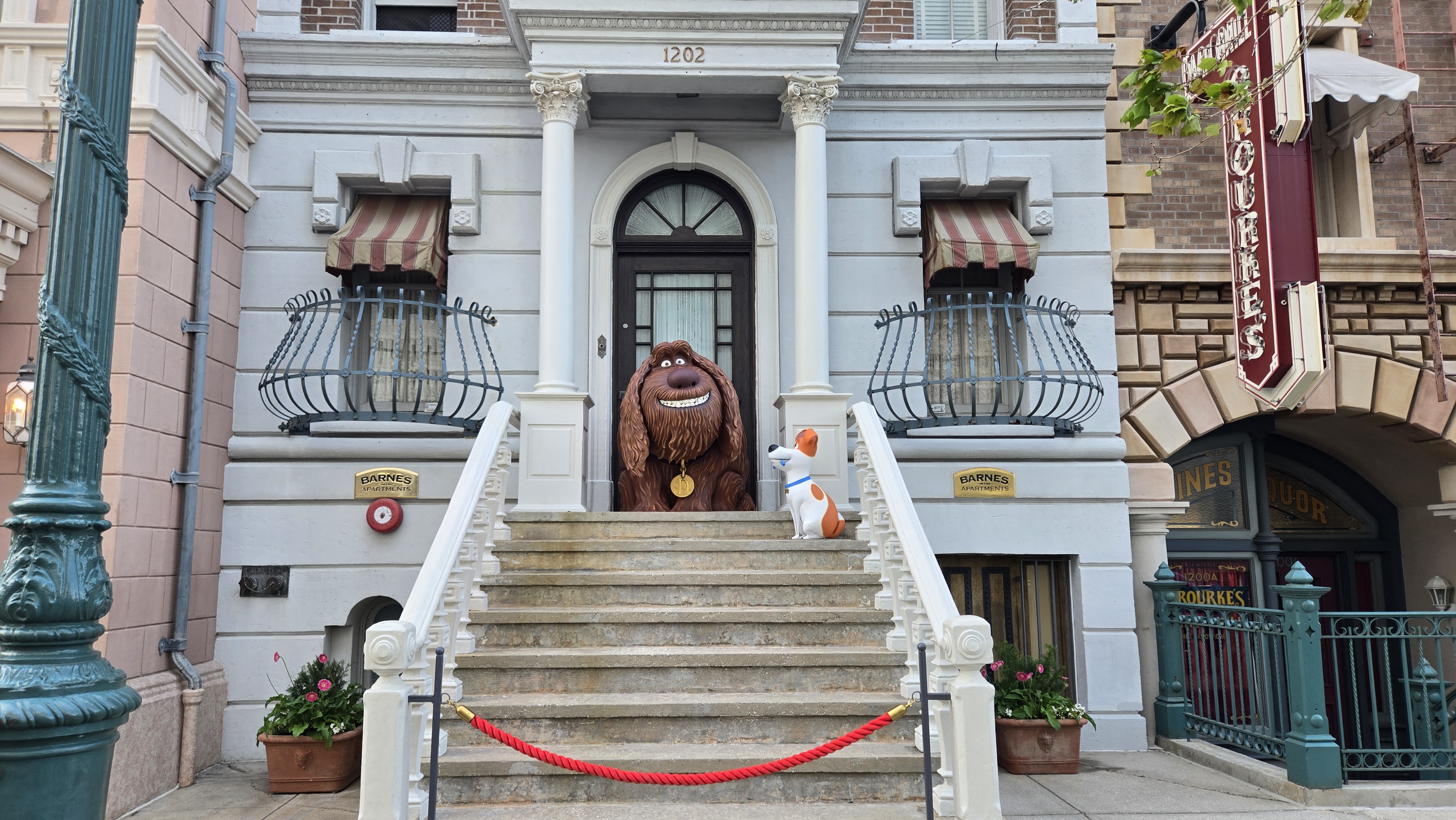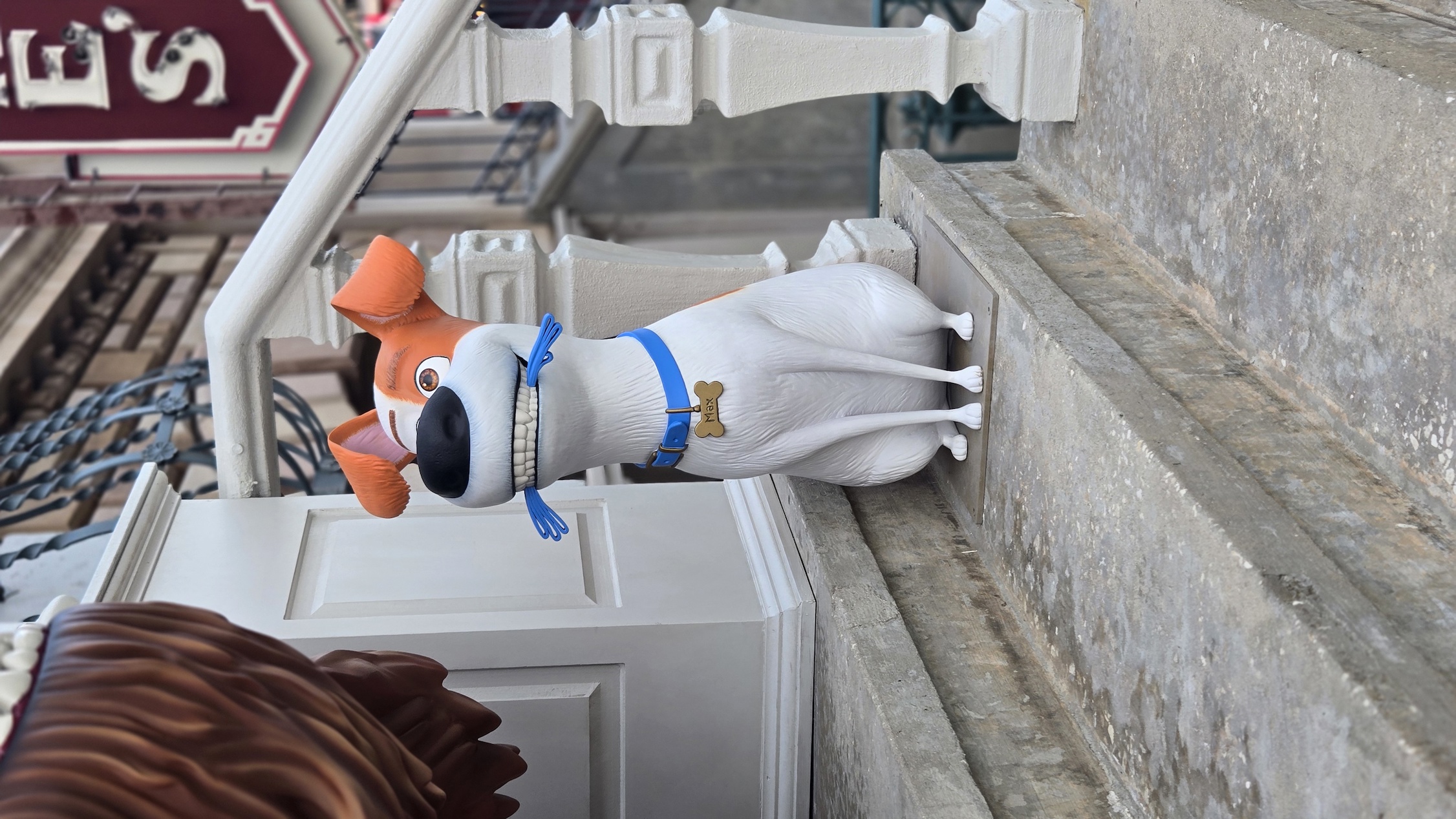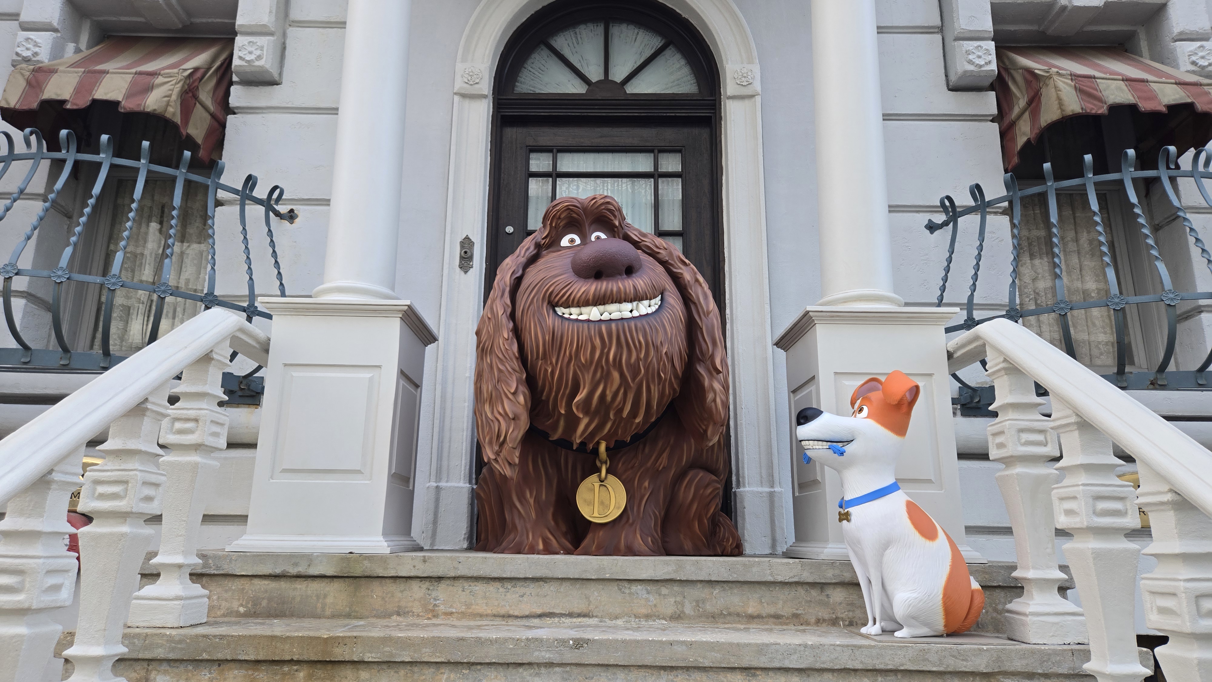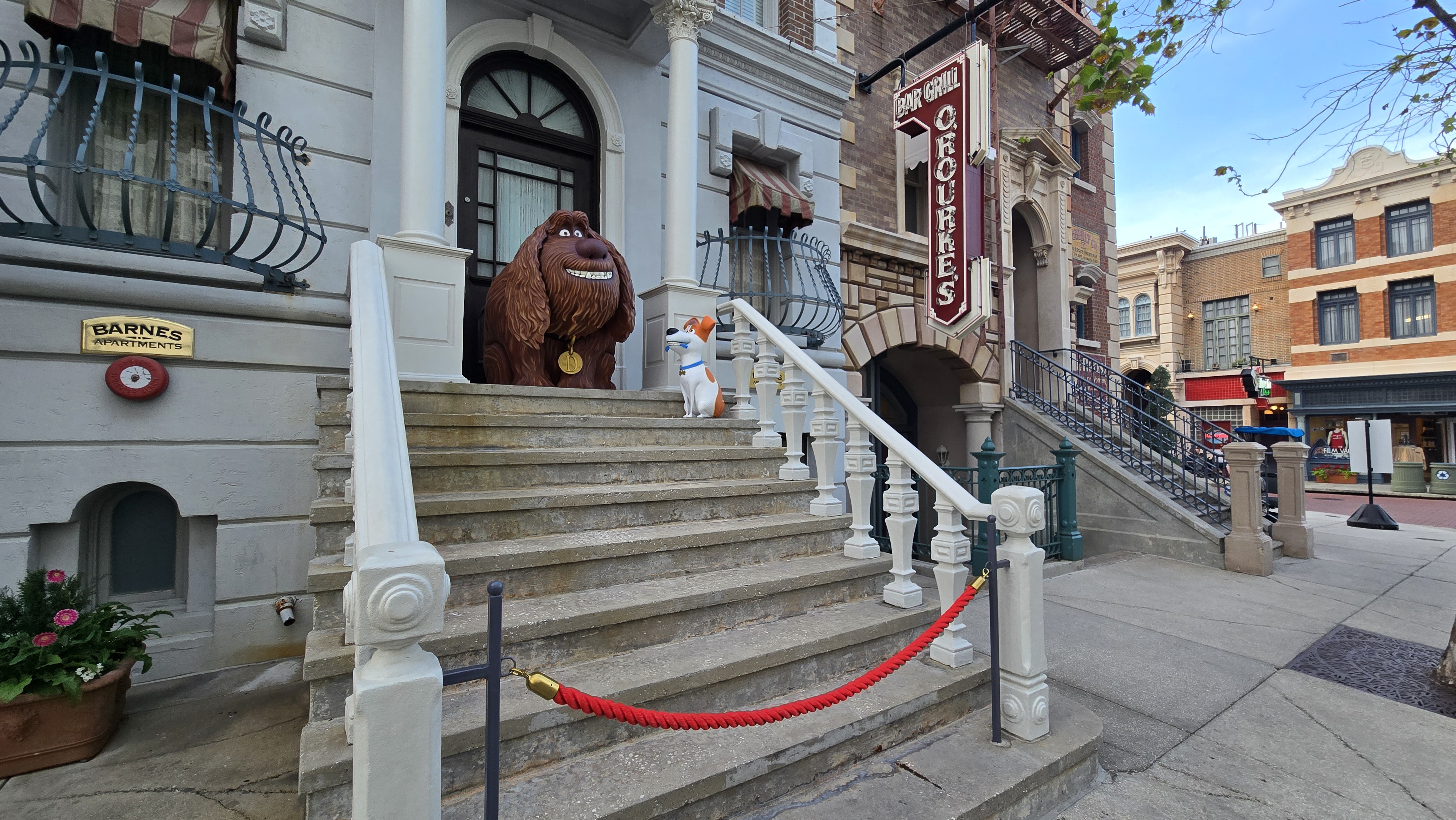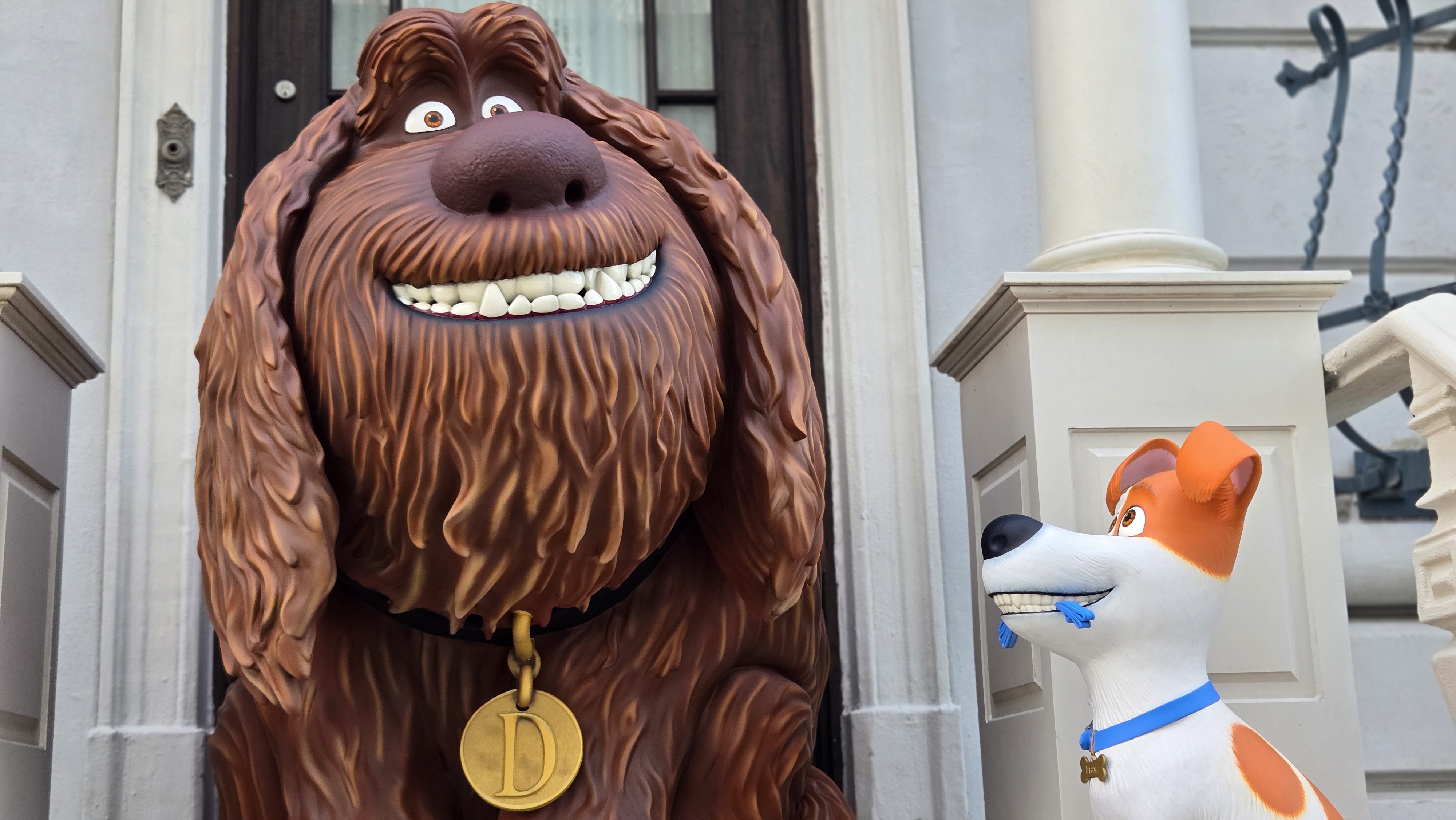 Max and Duke from The Secret Life of Pets have been added to one of the New York street facades at Universal Studios Florida, after previously being located near a bench by Race Through New York Starring Jimmy Fallon.