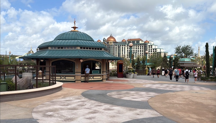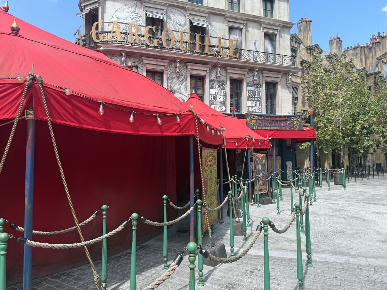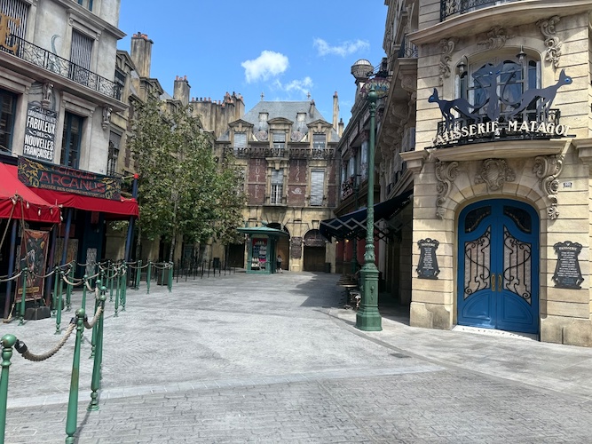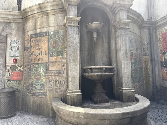 Beyond the world’s ornate portal, guests will first journey from a Muggle park in Paris into the breathtaking spectacle of 1920’s Place Cachée – a hidden, bustling shopping district in wizarding Paris lined with Haussmannian buildings, shops, sidewalk cafés, and historic Parisian domes rising in the distance.