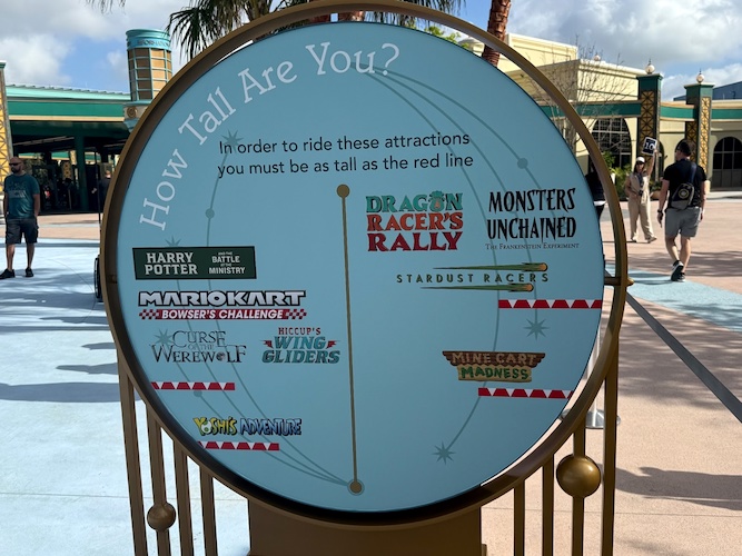 Before even entering Epic Universe, you’ll find this convenient guide to all of the height requirements in the park.