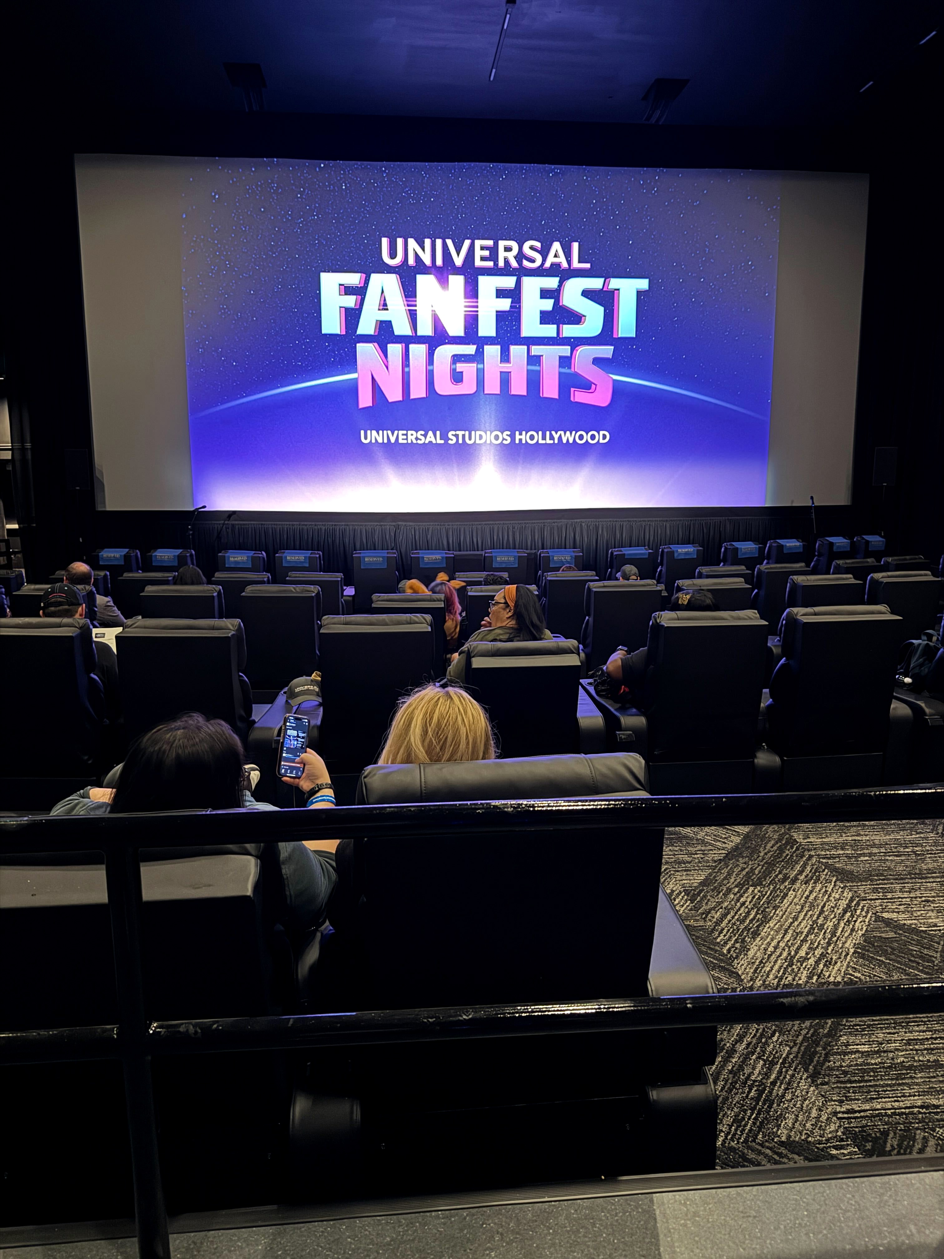 Inside the theater's auditorium, a Universal Fan Fest Nights slide was projected on the screen. We weren't permitted to take any photos or video of the presentation that followed, but what follows are the major beats.